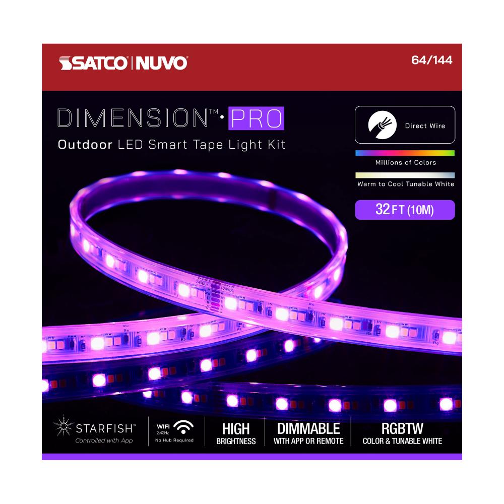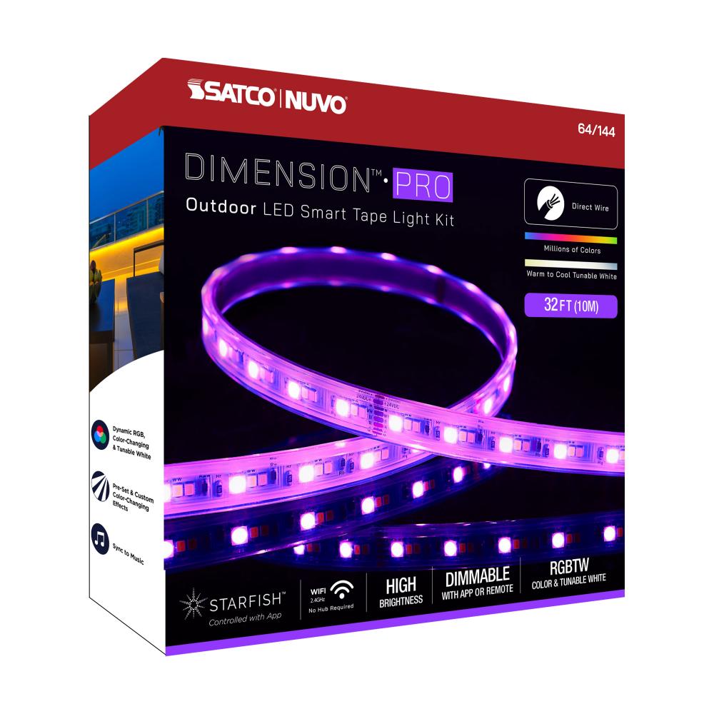 Elevate your outdoor space with DIMENSION Pro Outdoor 64-144 tape light kit, the smart app-controlled 32-ft direct-wire tape light that will redefine your lighting experience. Sync the lighting to your favorite soundtrack, create the perfect ambiance with