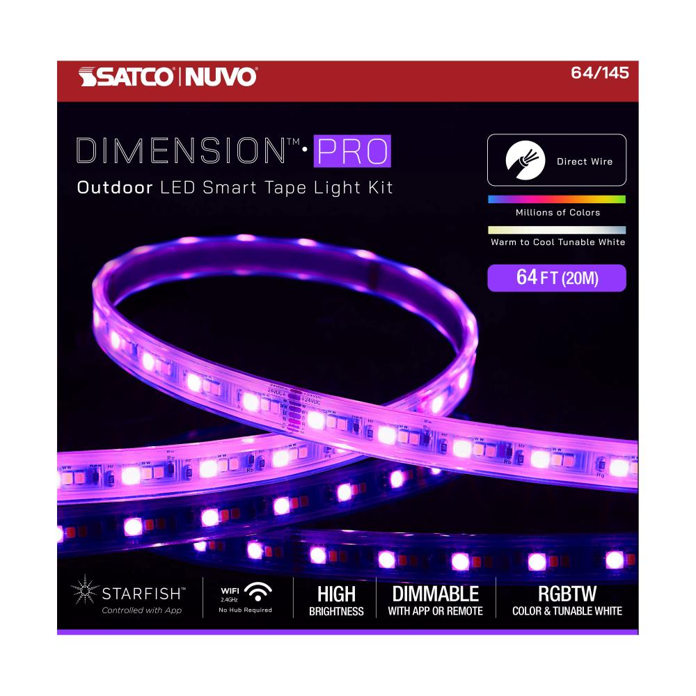 Elevate your outdoor space with DIMENSION Pro Outdoor 64-145 tape light kit, the smart app-controlled 64-ft direct-wire tape light that will redefine your lighting experience. Sync the lighting to your favorite soundtrack, create the perfect ambiance with