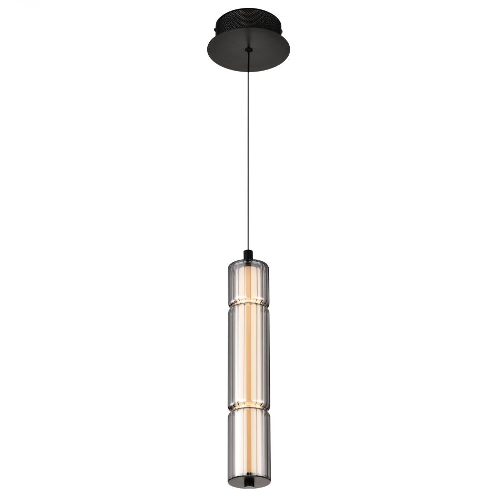 Evander; LED 16 Inch Mini Pendant; Matte Black Finish; Smoked Glass