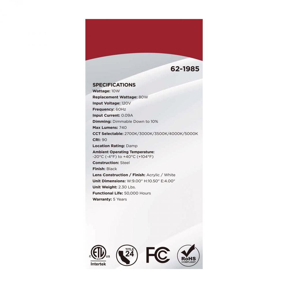 The SATCO NUVO 62-1985 Glamour Wall Sconce in white with a black finish delivers sleek, modern lighting with 5 CCT selectable technology (2700K–5000K) and 90 CRI illumination for vibrant color rendering. This 10-watt fixture replaces 80W incandescent lig
