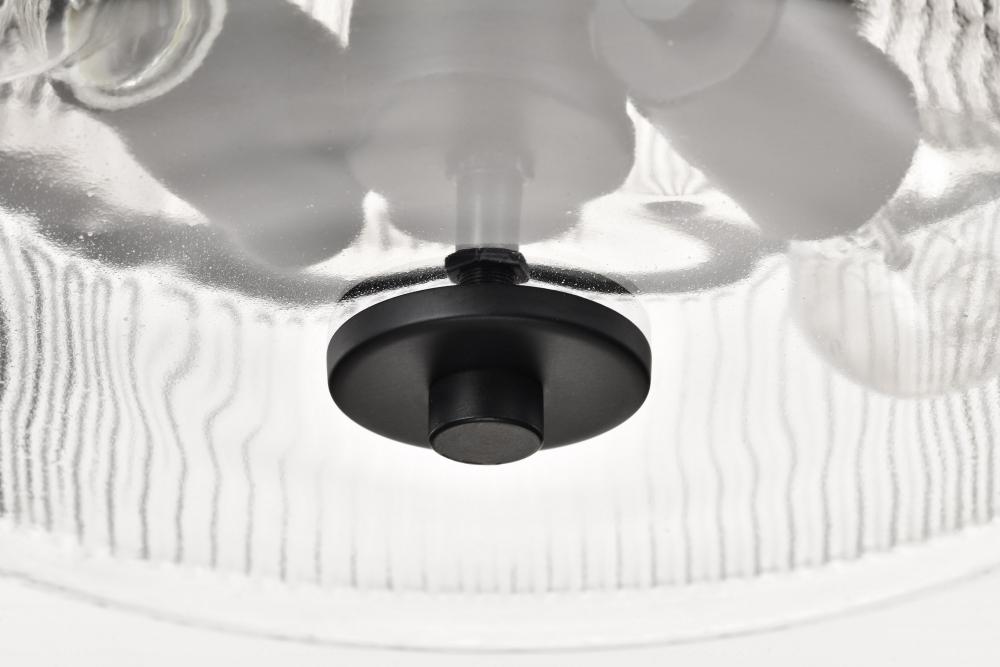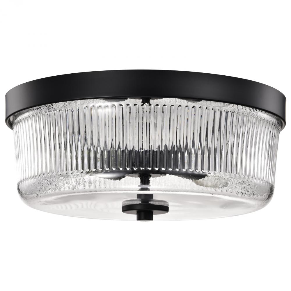 Grayson; Small Flush Mount; Matte Black Finish; Clear Ribbed Glass