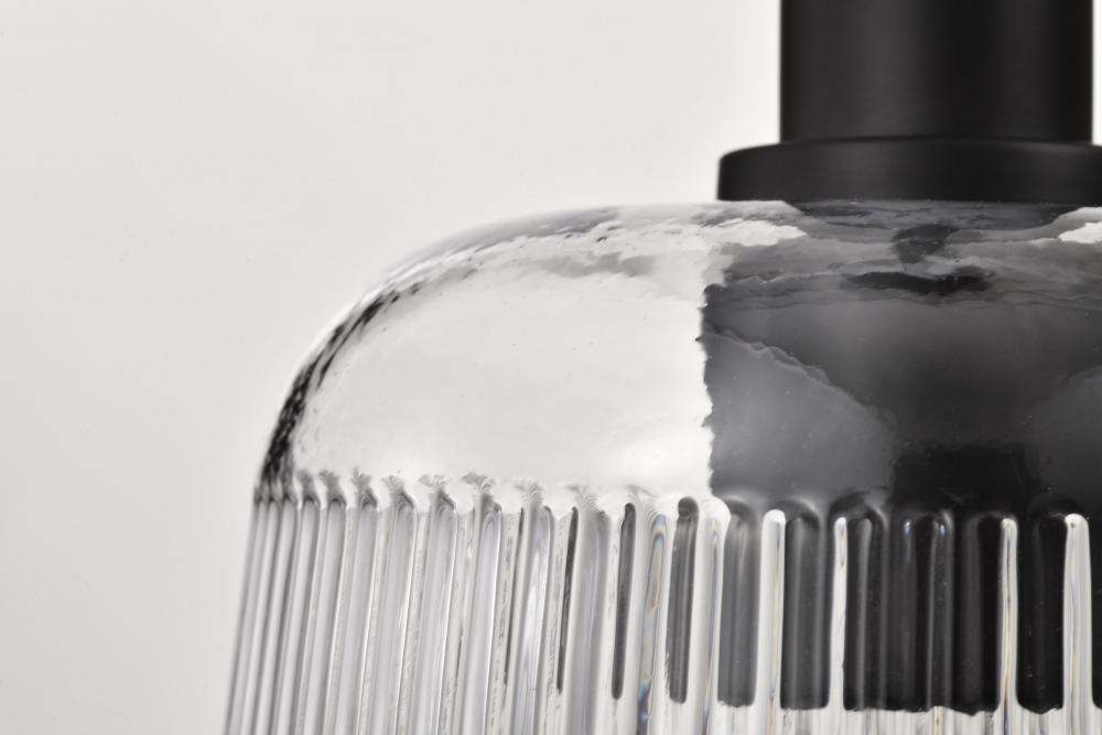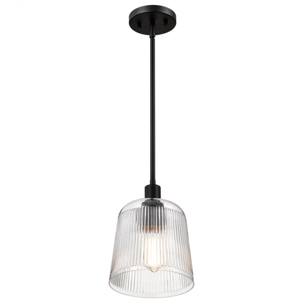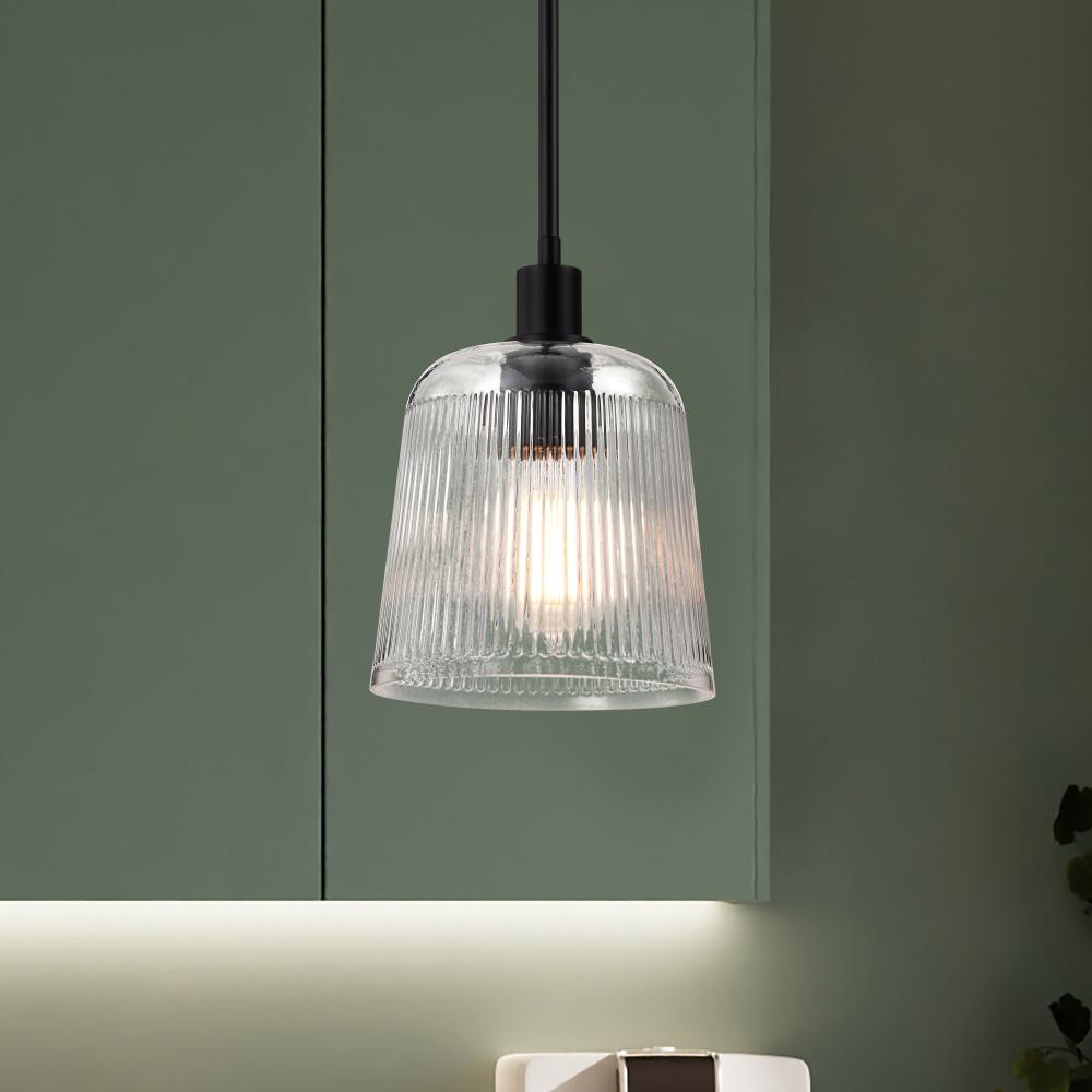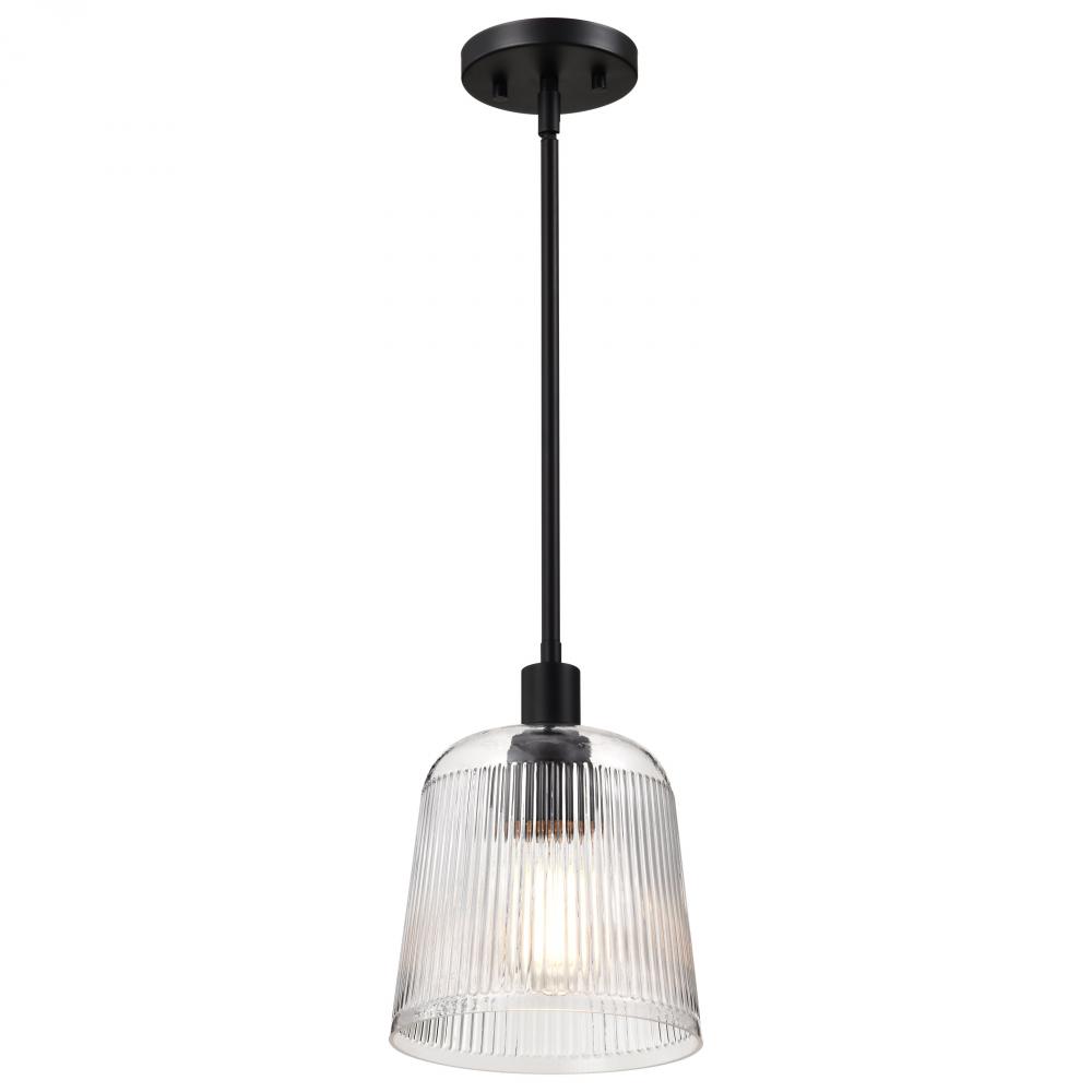 Grayson; Small Pendant; Matte Black Finish; Clear Ribbed Glass