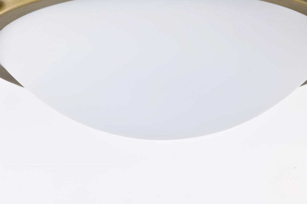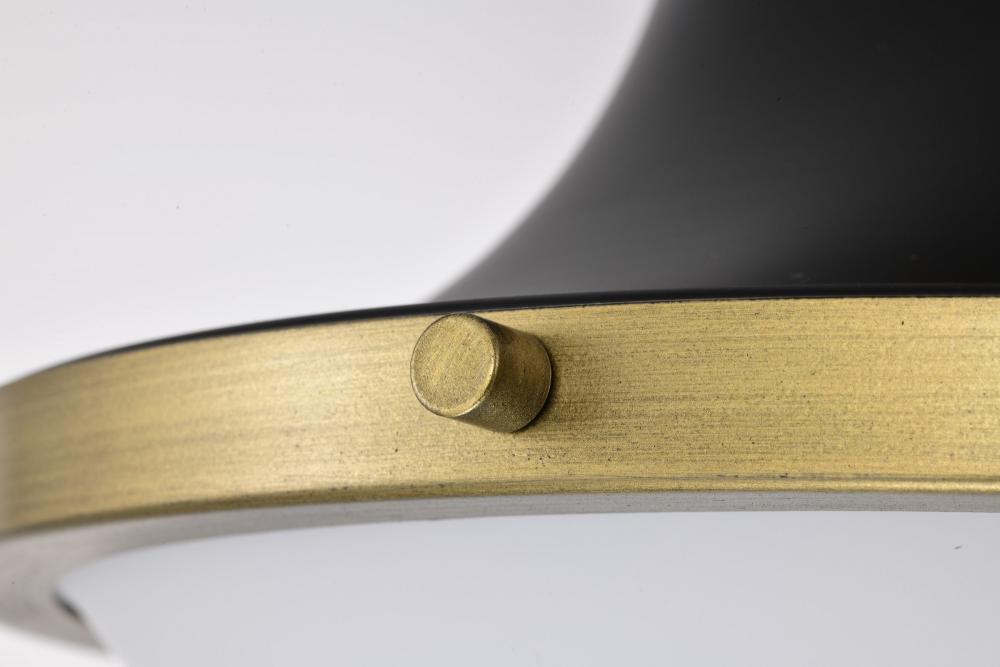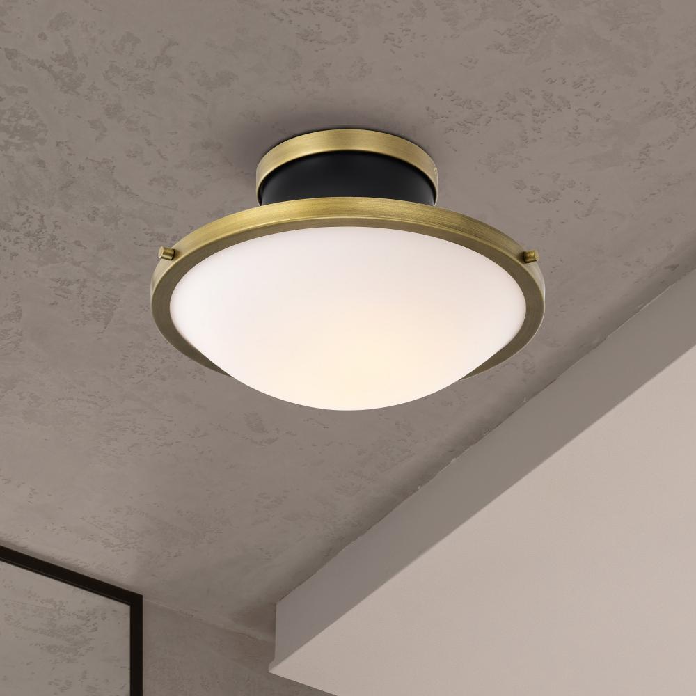 Lafayette 1 Light Flush Mount Fixture; 14 Inches; Matte Black Finish with Natural Brass Accents and White Opal Glass