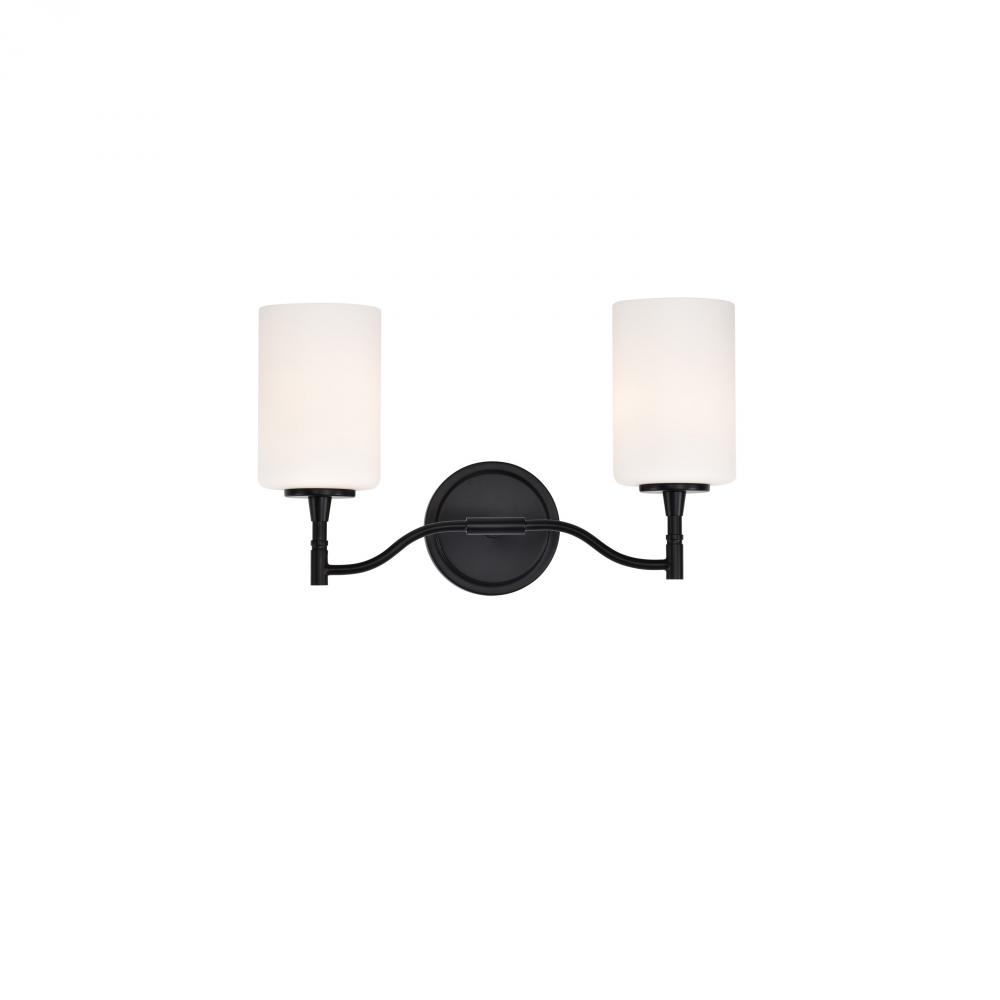 Liam; 2 Light Vanity; Matte Black; White Opal Glass