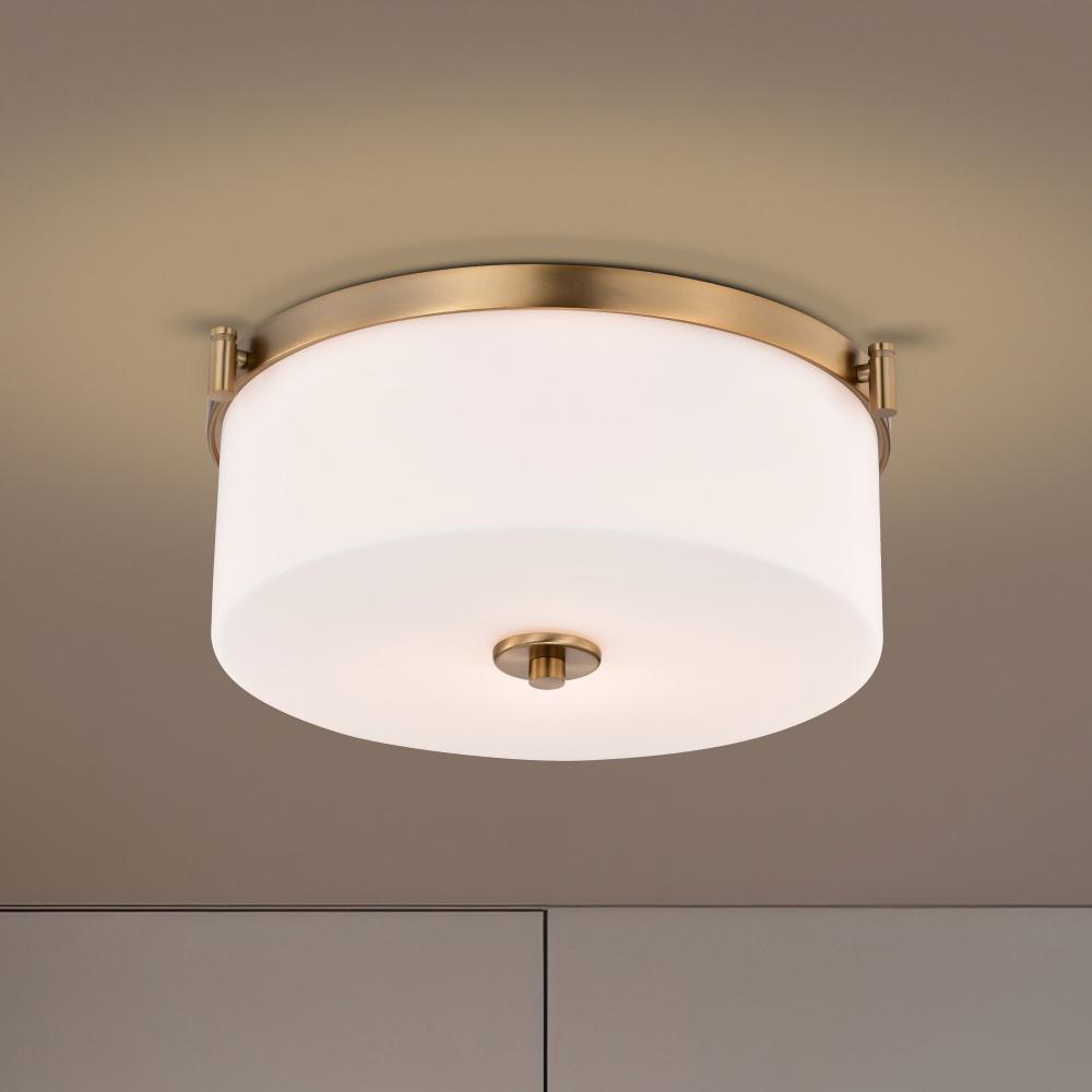 Seamlessly blending transitional design with contemporary accents, the Liam 60-8207 three light flush mount exudes understated elegance. A sophisticated burnished brass finish, perfectly complements the soft glow of white opal glass. With its broad appeal