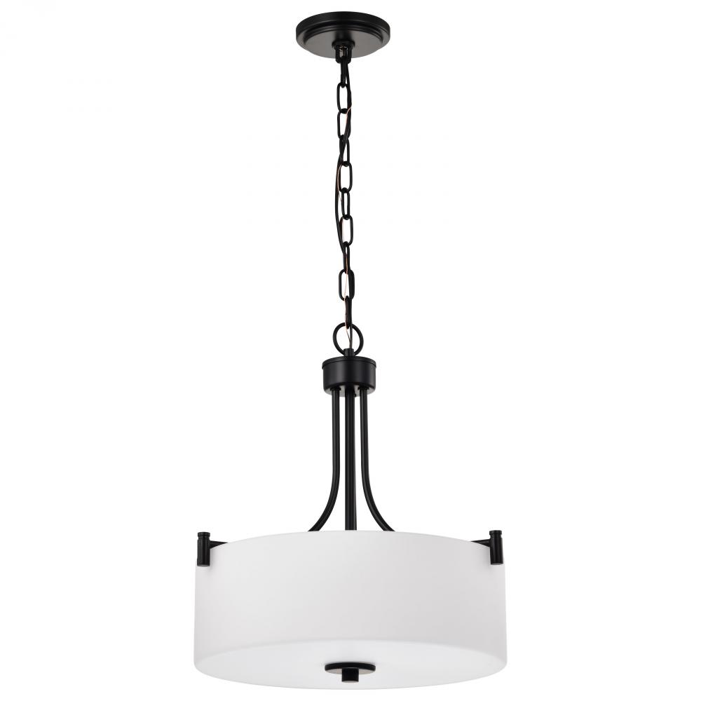 Seamlessly blending transitional design with contemporary accents, the Liam 60-8214 three light pendant exudes understated elegance. A sophisticated matte black finish, perfectly complements the soft glow of white opal glass. With its broad appeal and vers