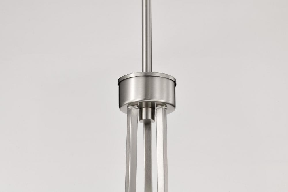 Indulge in the glamour of the Royale 60-8736 five light chandelier, where sleek Art Deco silhouettes meet modern refinement. The satin white pleated glass adds texture and sophistication, diffusing light with a soft, radiant glow. Finished in brushed nicke