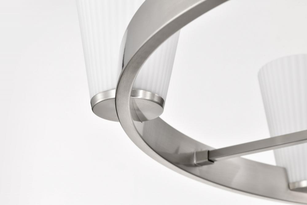 Royale; 6 Light Chandelier; Brushed Nickel Finish; Ribbed White Glass