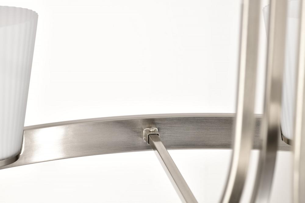 Indulge in the glamour of the Royale 60-8739 eight light chandelier, where sleek Art Deco silhouettes meet modern refinement. The satin white pleated glass adds texture and sophistication, diffusing light with a soft, radiant glow. Finished in brushed nick