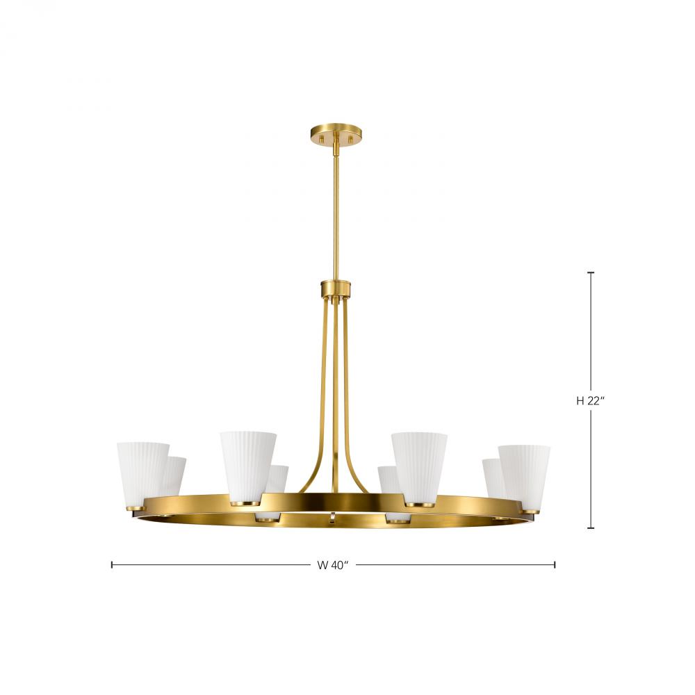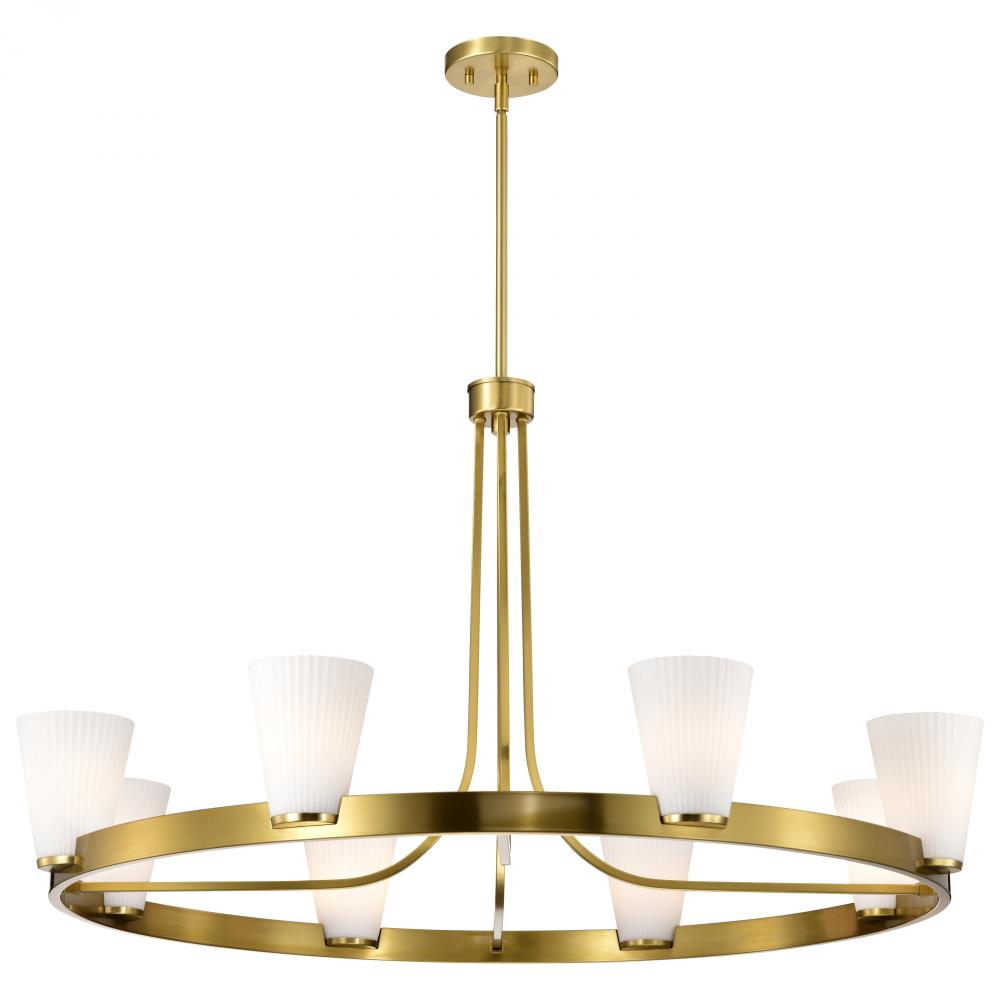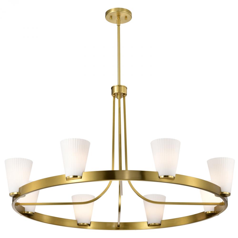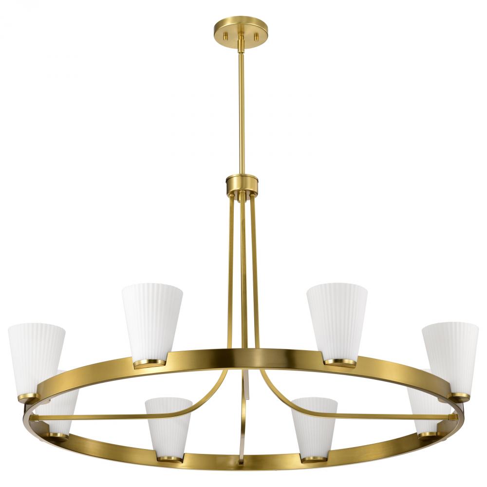Royale; 8 Light Chandelier; Burnished Brass Finish; Ribbed White Glass