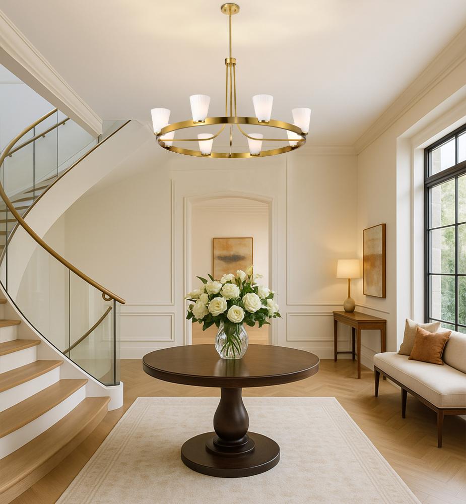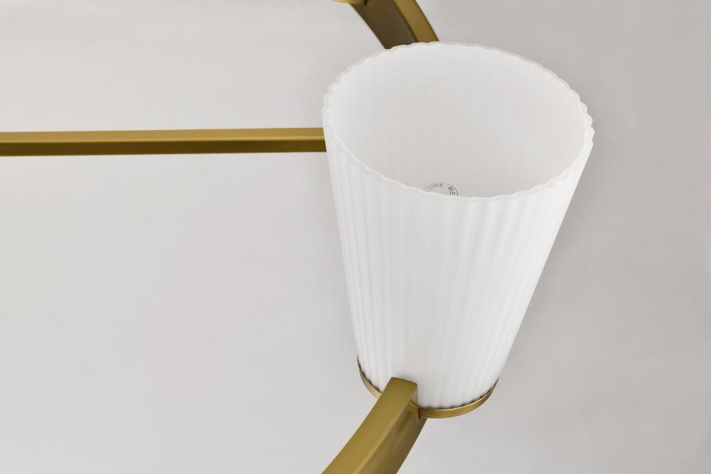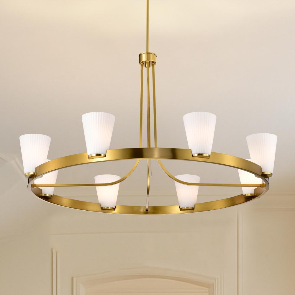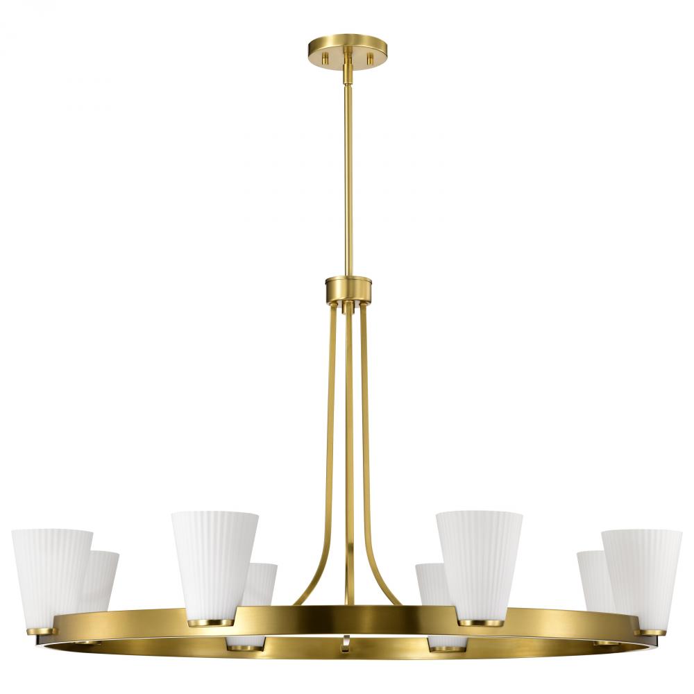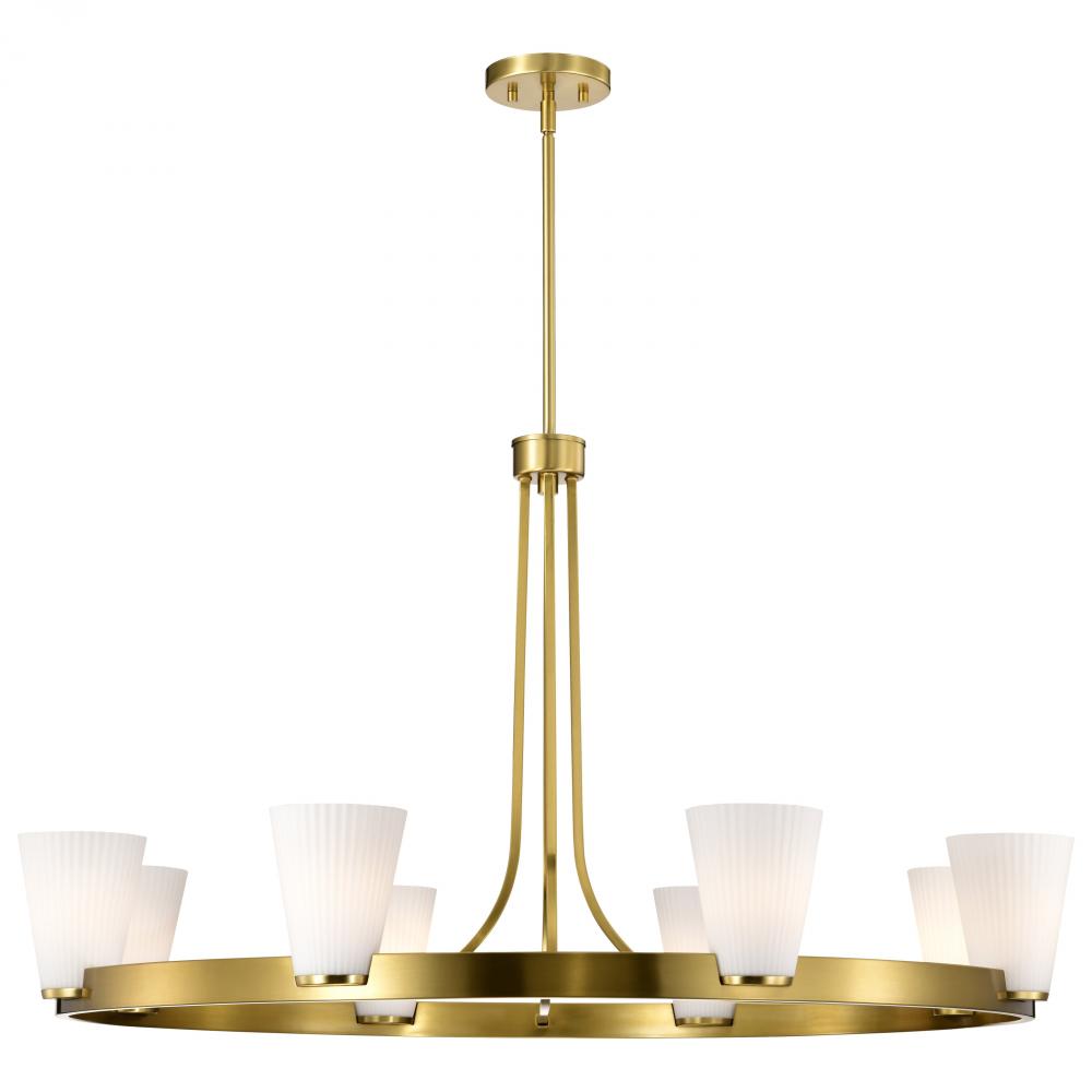 Royale; 8 Light Chandelier; Burnished Brass Finish; Ribbed White Glass