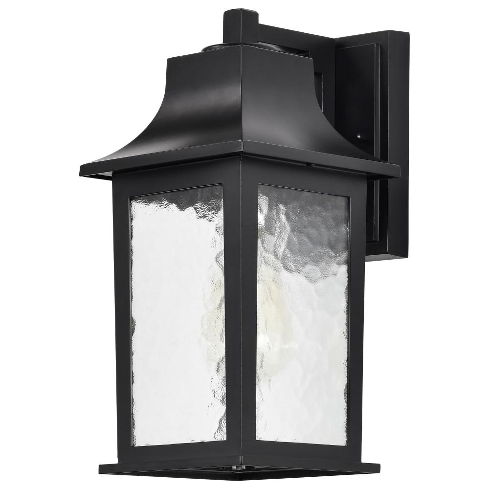 Stillwell Collection Outdoor 13 inch Wall Light; Matte Black Finish with Clear Water Glass