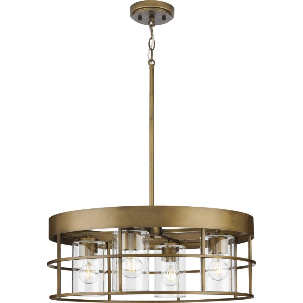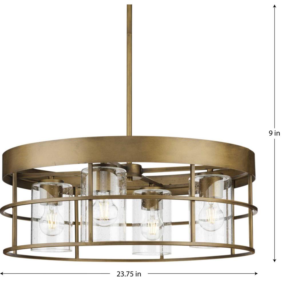 Add a rustic flair to hallways, foyers, dining rooms, laundry rooms, walk-in closets, breakfast nooks and bedrooms with the Burgess Four-Light Chandelier