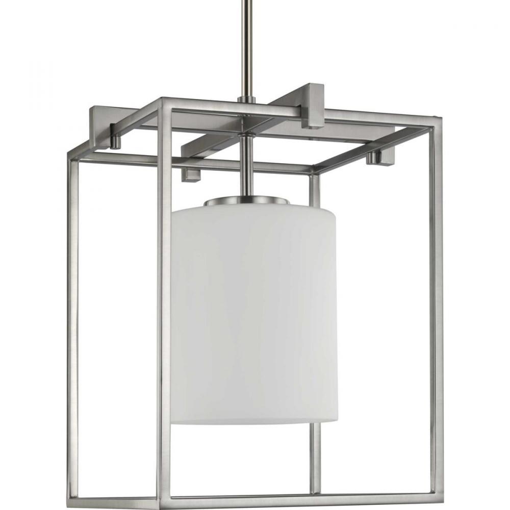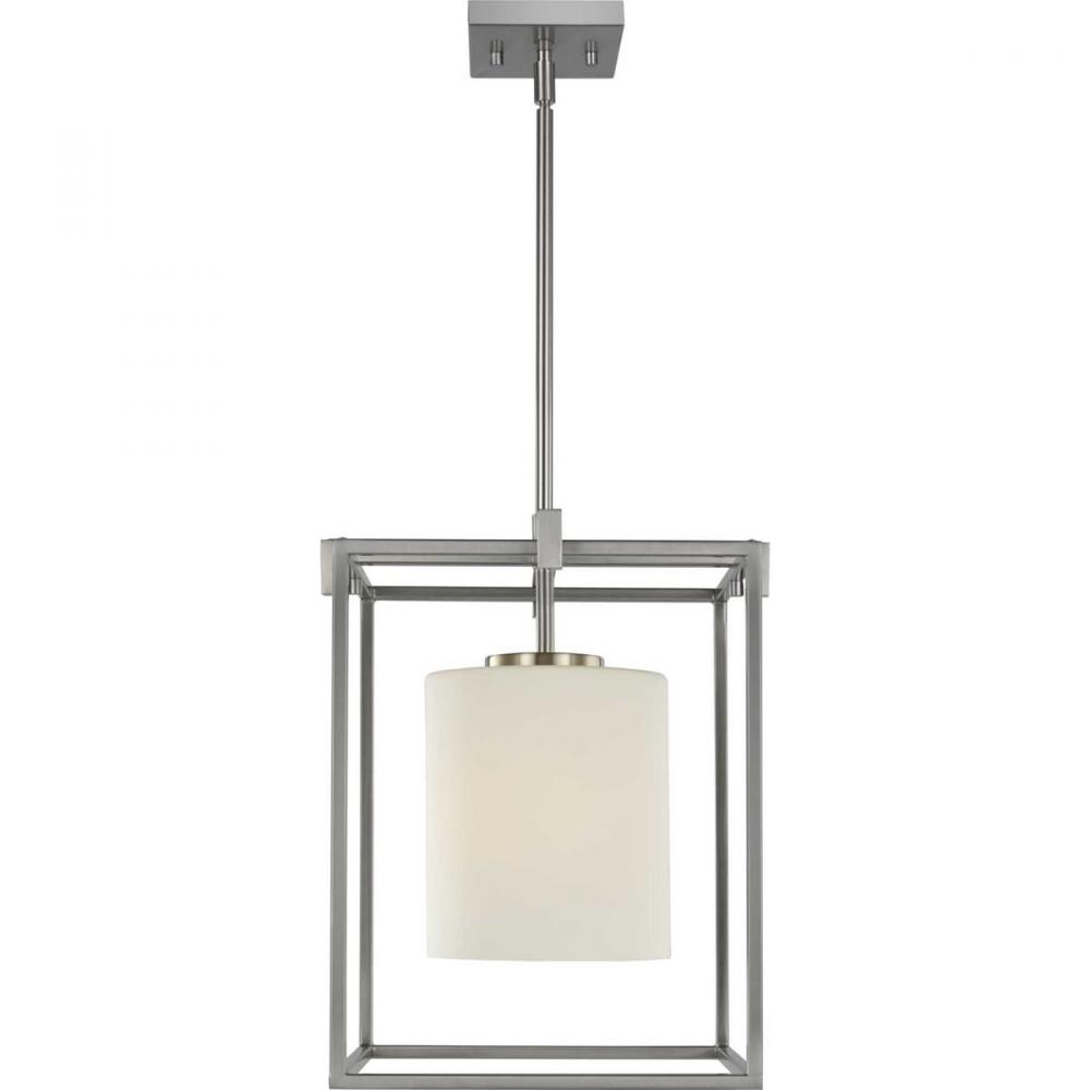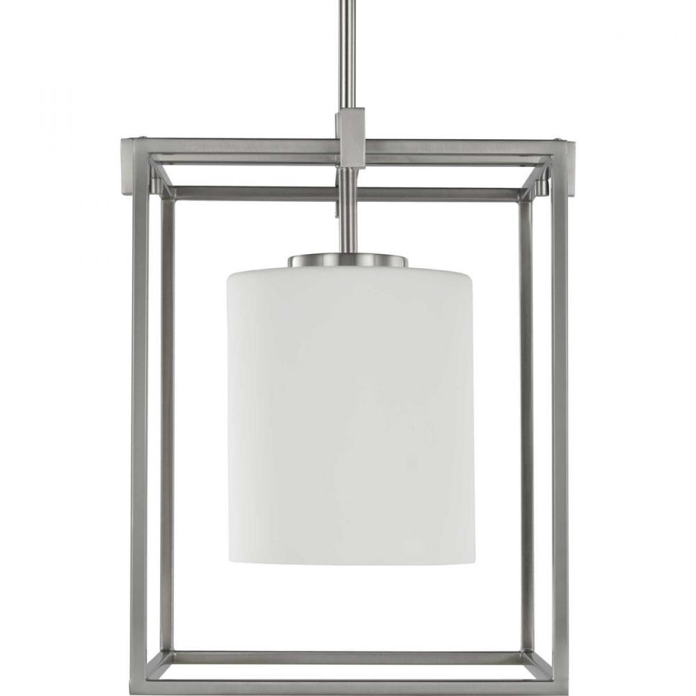 Stick With Simple Geometric Forms And Clean Crisp Lines With This Modern Mini-Pendant. A Beautiful Opal Glass Shade Visually Calms The Sharp Edges Of The Boxy Frame In A Masterful Stroke Of Design Excellence. The Frame Is Coated In A Classic Brushed Nickel Finish That Contrasts The Light Shade. The Light Fixture Is Just Right For Spaces In Need Of A Subtle, Feminine Touch.