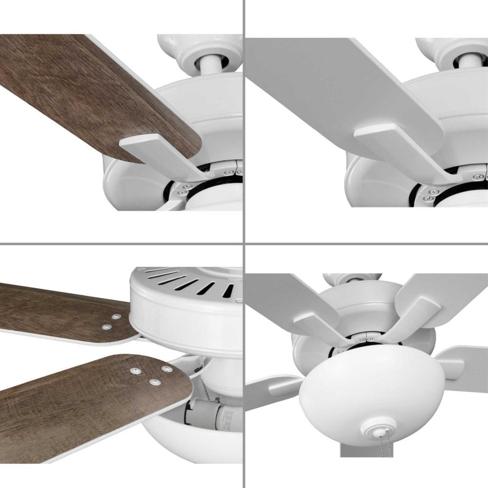 The AirPro 52” 5-blade ceiling fan refreshes interiors with a sleek, modern form coated in a crisp White finish. Five clean-lined fan blades extend outward from a streamlined motor housing that contains a powerful AC motor. Its versatile yet timeless design makes it ideal for a wide range of interior décor styles. The fan has an AC motor and is rated for maximum efficiency. A Unipack option packages the light kit so that it ships with the fan, eliminating both the need to order the light kit separately and having the light kit shipped separately from the fan. A shatterproof white Frosted polypropylene dome shade offers durability and optimal, even illumination. Two medium based LED lamps (8.5-Watt, 80CRI, 3000K) are included. An accessory wall and remote control can be added (sold separately). The fan can be installed on a flat or sloped ceiling. The blade arms have Captive Screws allowing for easier installation.