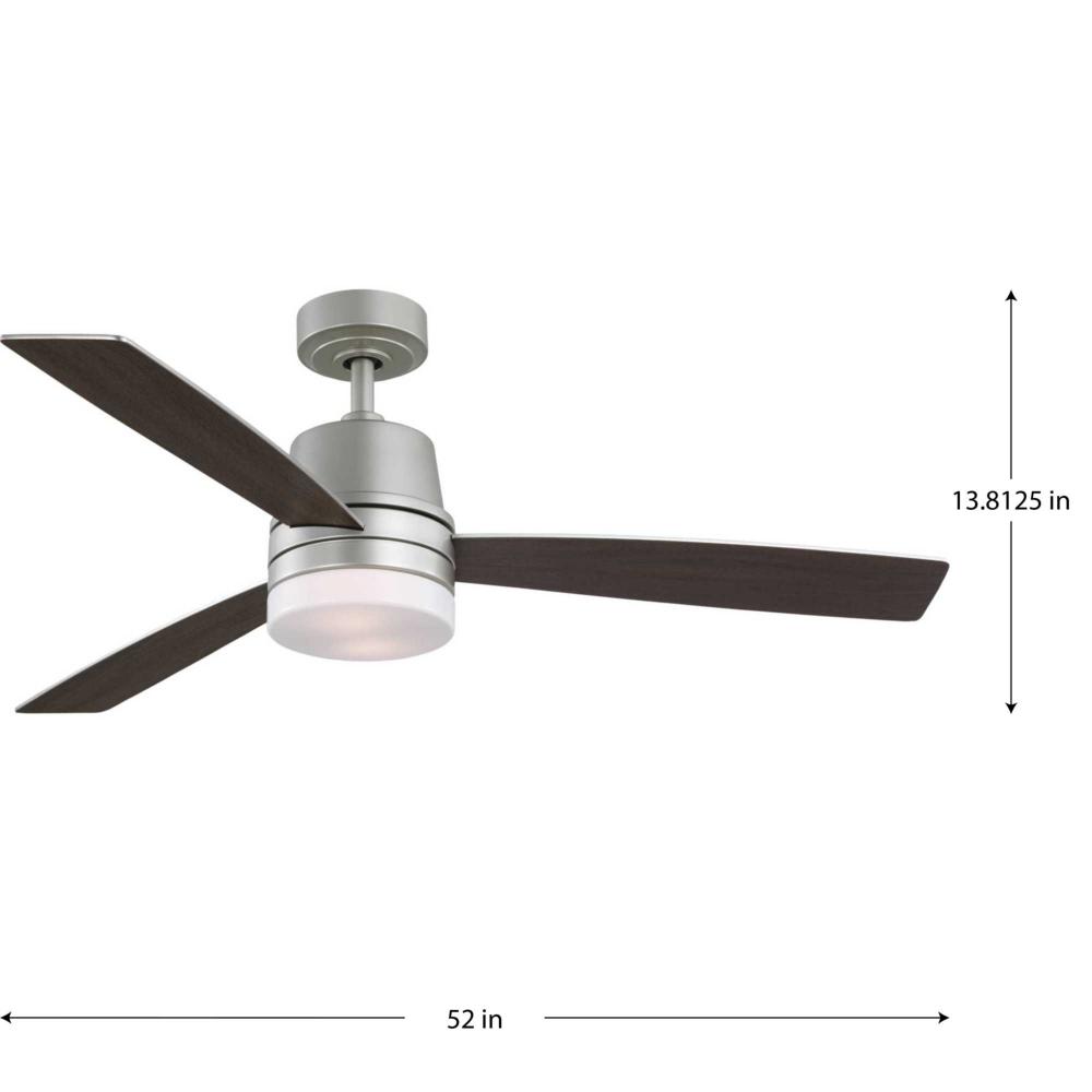 3 sleek blades finished in smooth brushed nickel extend from a housing coated in a painted nickel finish