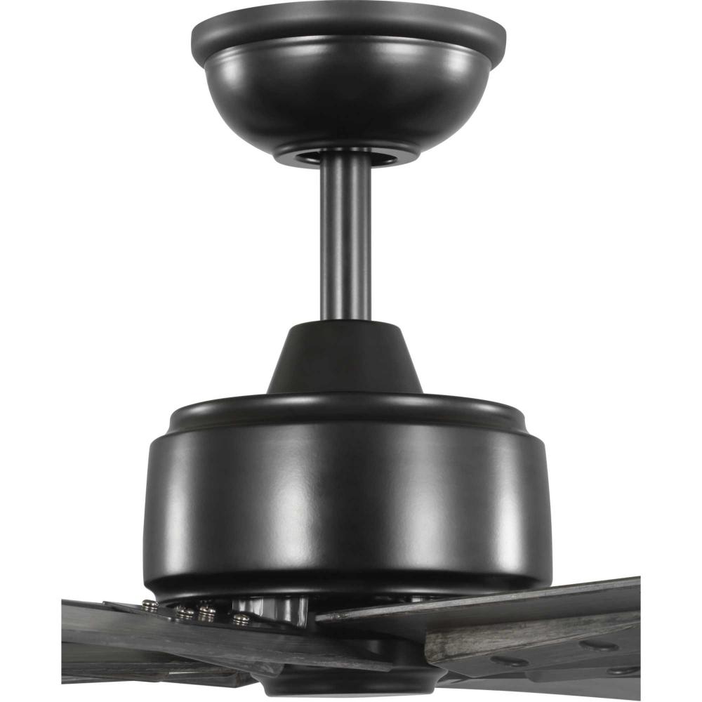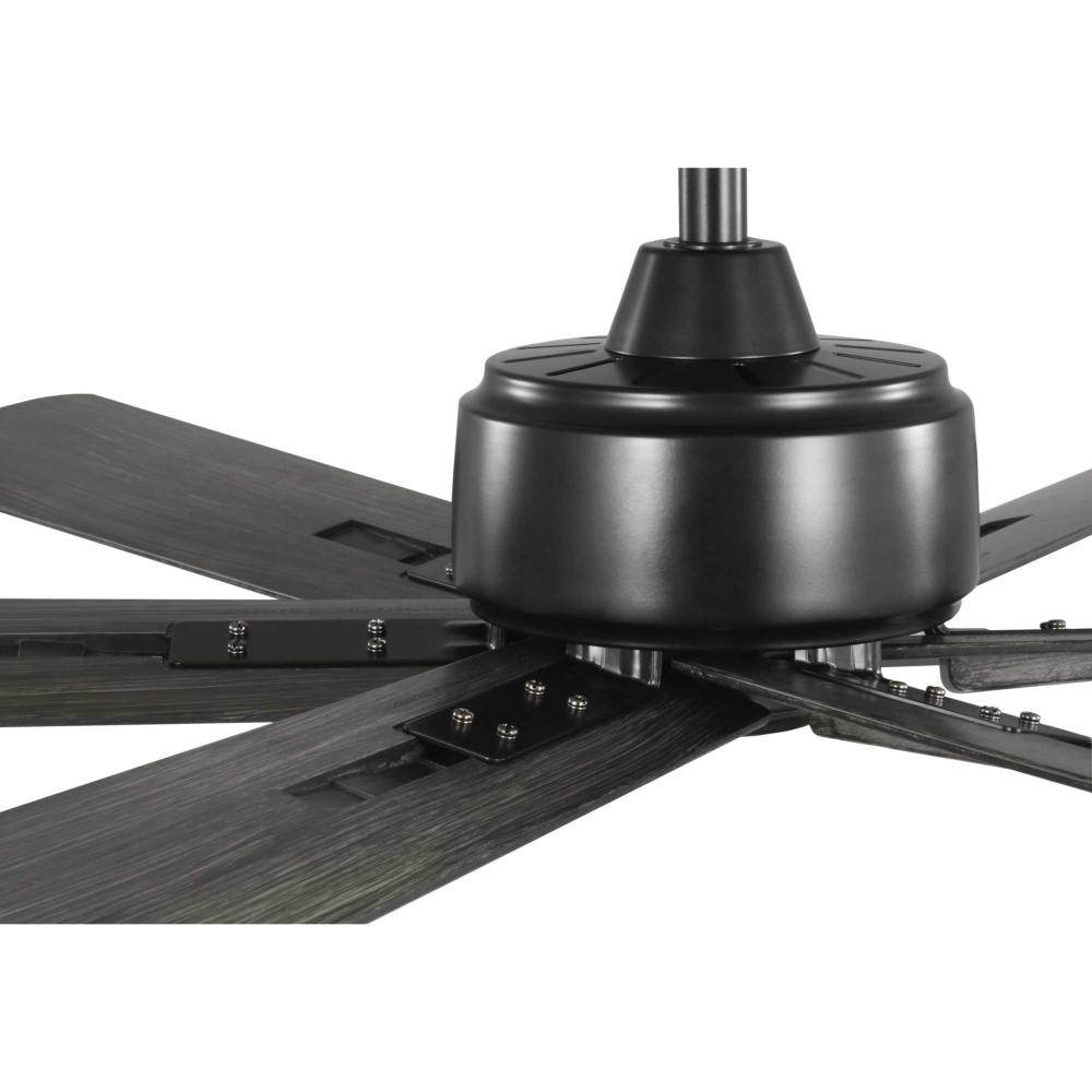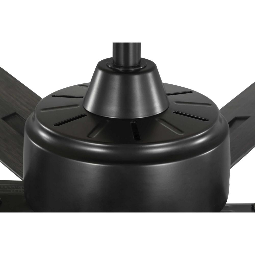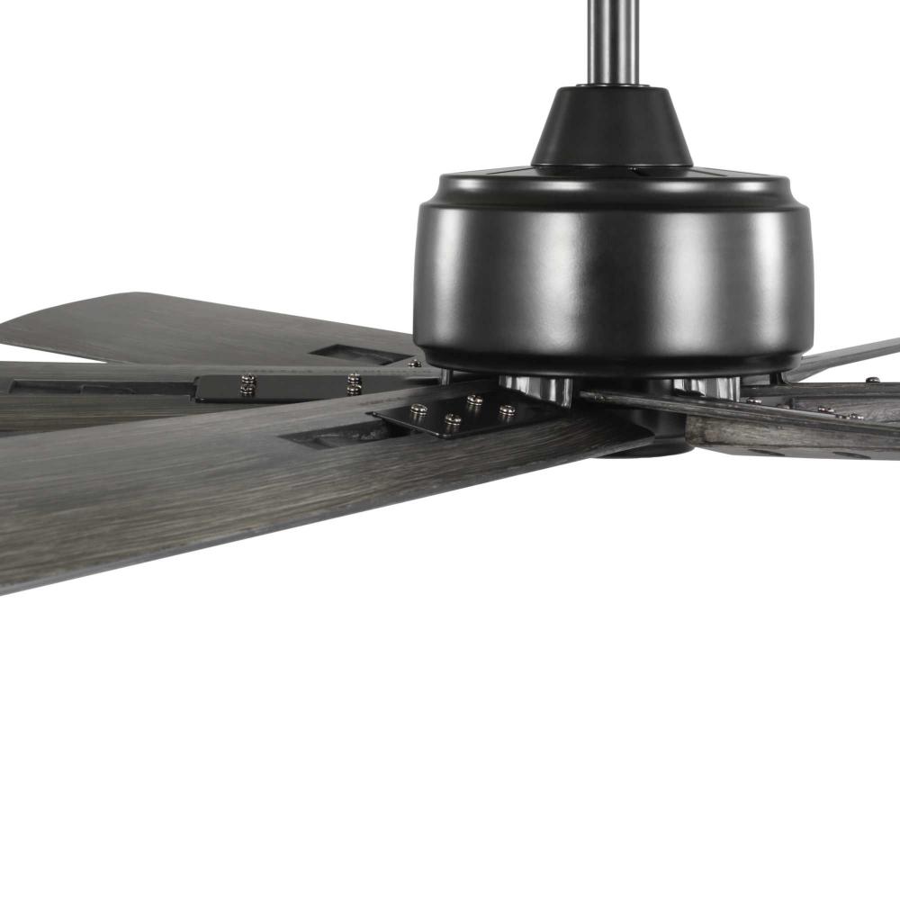 The fan is finished in matte black complemented by six all-weather ABS blades in distressed ebony finish