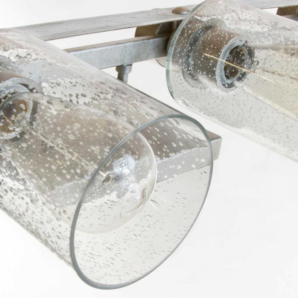 Ideal for a bathroom;Perfect for coastal, farmhouse, rustic, and urban industrial style settings;Gorgeous galvanized finish hand painted antique white faux wood accents;Rustic clear seeded glass shades;Mount the light fixture facing up or down;Use 4 medium