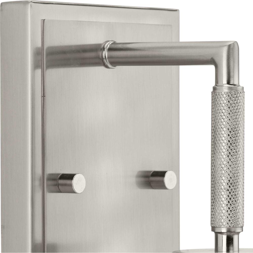 A Brushed Nickel finish emphasizes the fixture's knurled design
