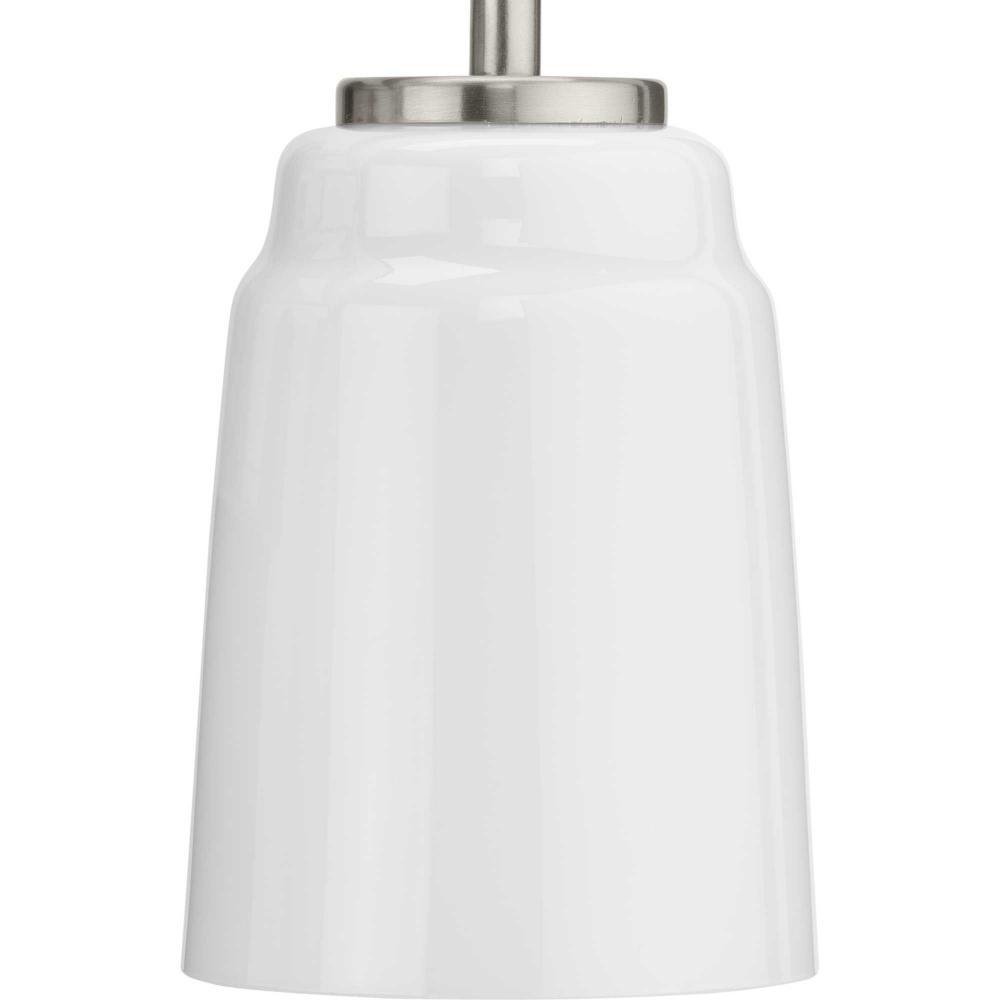 A Brushed Nickel finish emphasizes the fixture's knurled design