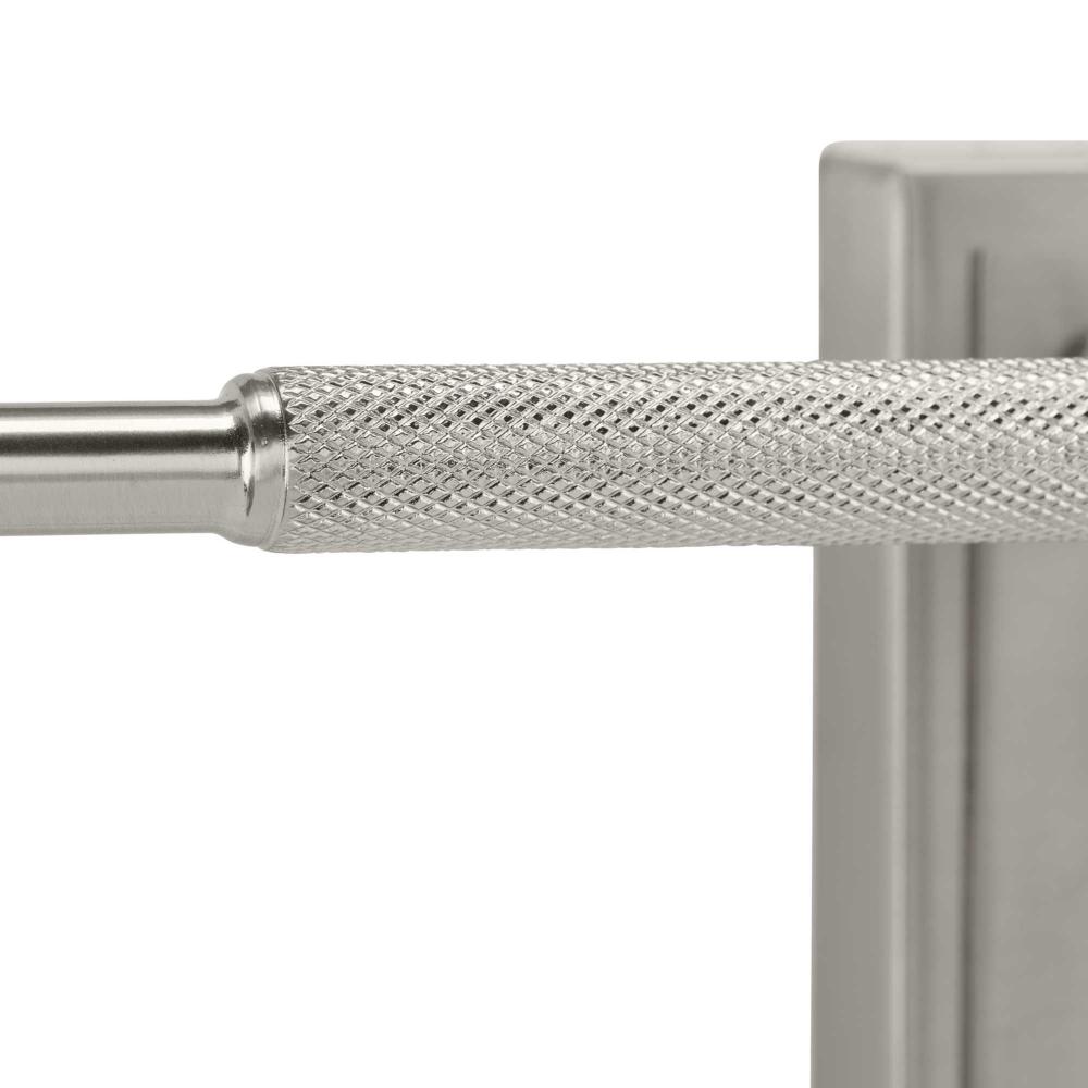 A Brushed Nickel finish emphasizes the fixture's knurled design