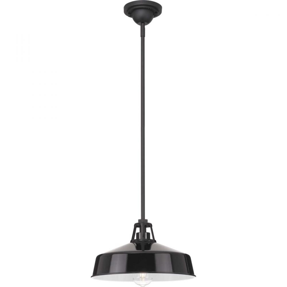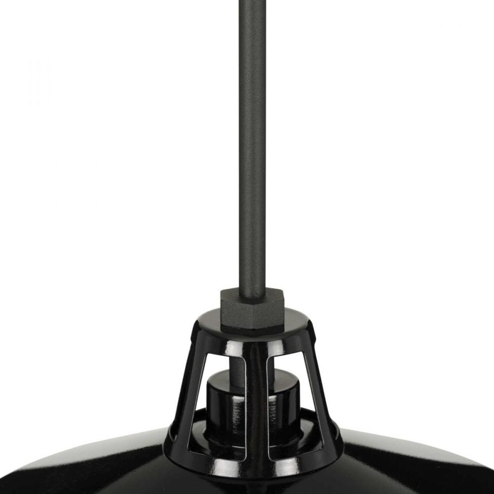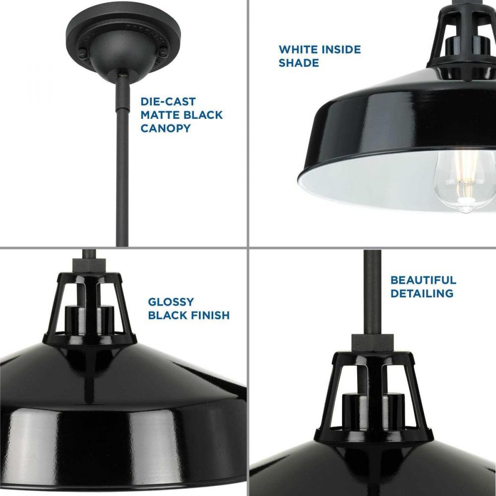 Ideal for a patio, kitchen, or porch;Perfect for farmhouse, urban industrial, and coastal style settings;Classic black finish with textured black accents;Black metal shade;Includes one 6-inch stem and four 12-inch stems to adjust for a variety of ceiling h