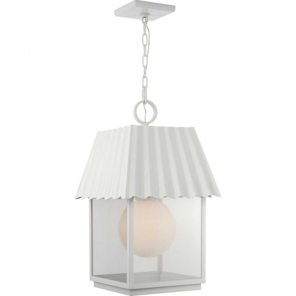 Evoking thoughts of Jeffrey Alan Marks' East Coast summer home, the Hook Pond Collection features a steeply pitched, barn-inspired roof crowned with a distinctive loop finial. A clean, modern frame holds glass panels printed with a unique silver mesh pattern reminiscent of a traditional screened-in porch. Light is comfortably diffused from the white opal glass orb held within the generously scaled frame. This family of fixtures is part of the Jeffrey Alan Marks Point Dume lighting collection which celebrates a curated mix of yesterday and today, distilling both industrial and artisanal influences.