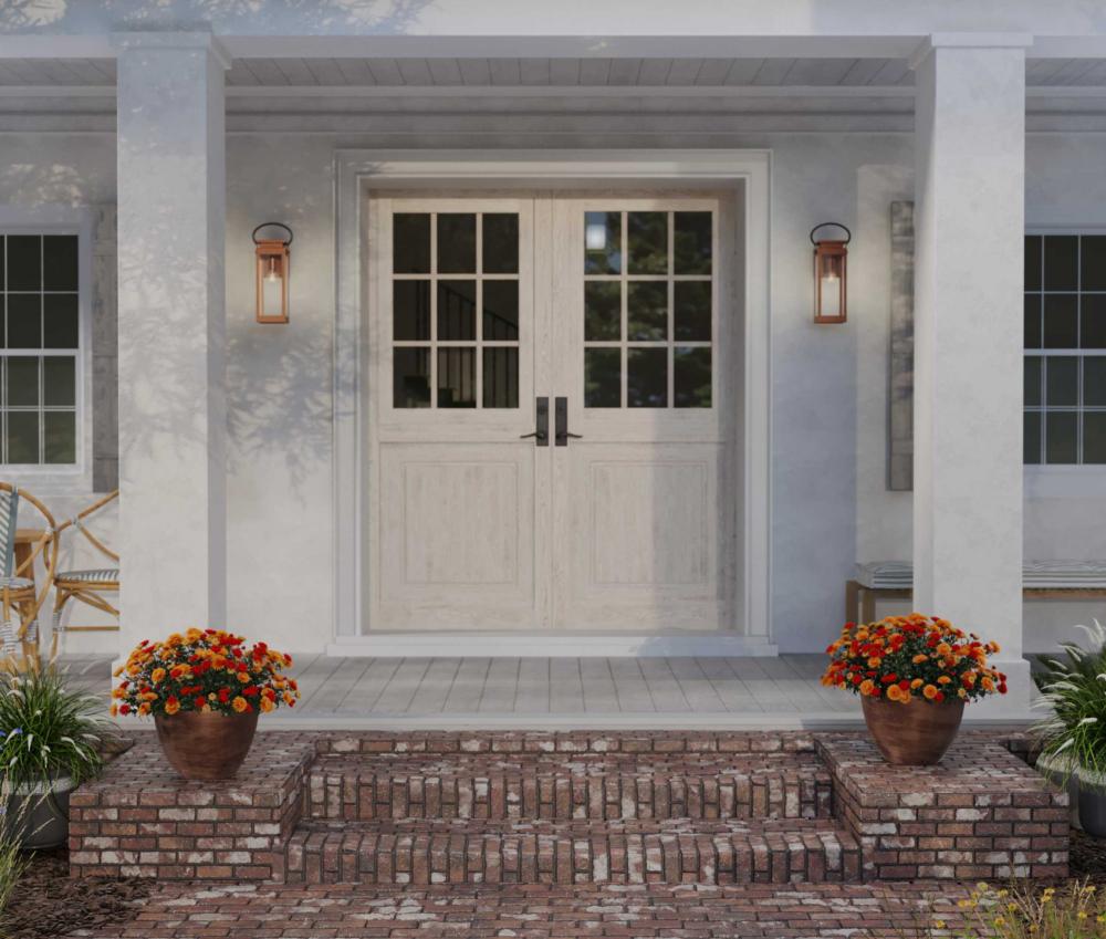 The fixture's angular frame and clear glass shade accent vintage electric, urban industrial and farmhouse exteriors