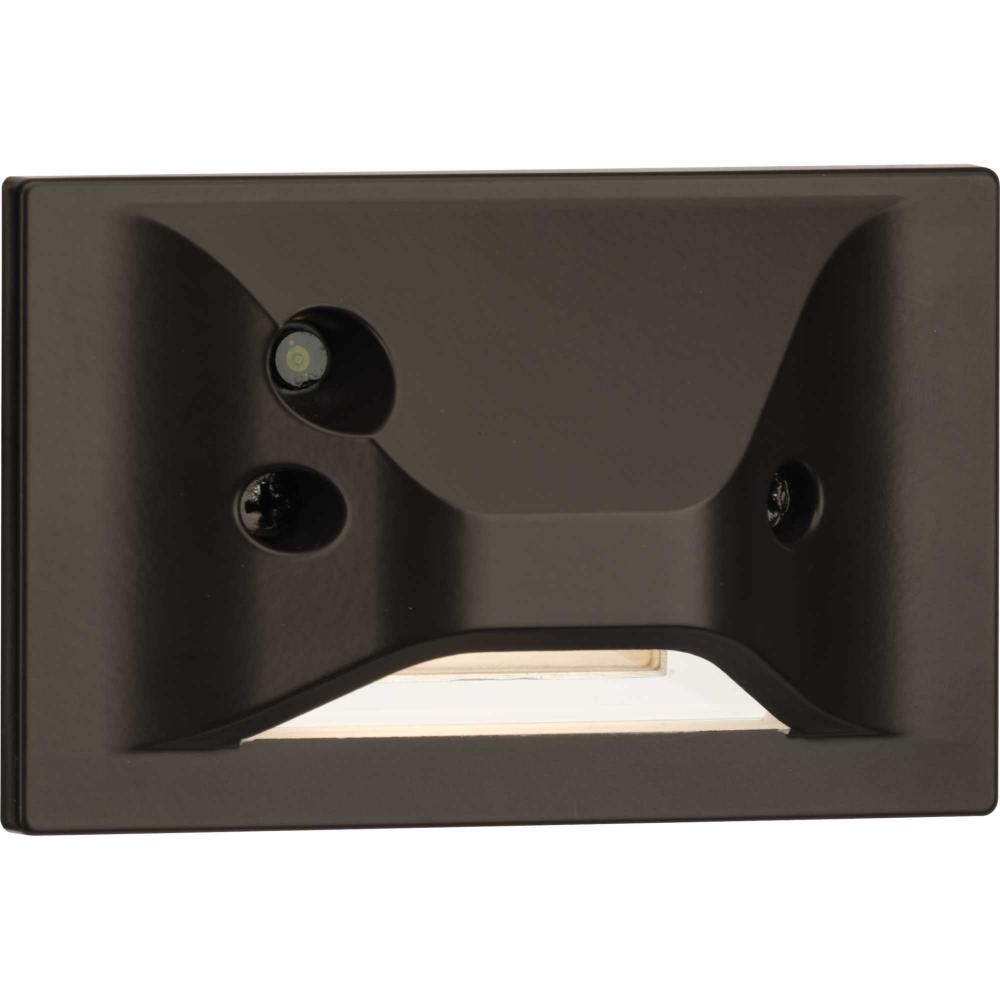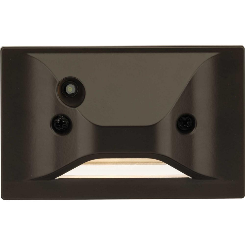 The LED Step/Wall Light finished in mellow antique bronze will complement many interior and exterior architectural styles, whether residential or commercial. A horizontal and a vertical exterior face plate are provided to accommodate either a horizontally or vertically oriented installation. The step light features an integrated photocell with automatic dusk to dawn operation, automatically turning the fixture on and off at sunset and sunrise, eliminating the need for additional controls. The photocell is enclosed in a gasketed lens, allowing it to meet the rigorous demands of wet location use. The die-casted face plates offer modern styling with added performance, directing the light downwards with a full cut-off of higher angle light to minimize glare. Use these lights to clearly illuminate stairs, walls, and walkways, resulting in performance, cost and safety benefits. It is cCSAus wet location rated for use in areas with direct water contact. .