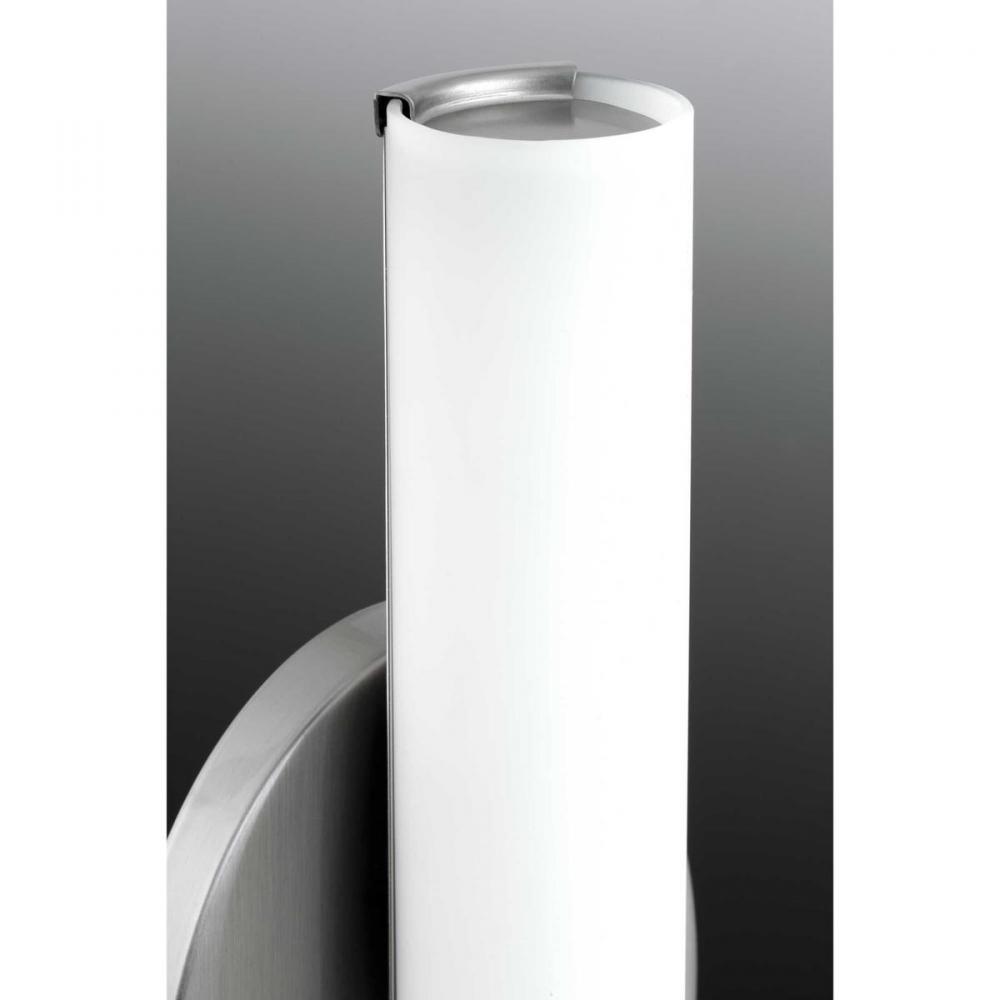 Parallel LED vanity and sconces feature a tubular opal glass diffuser paired with a simple, modern metal canopy. An integrated LED source provides a variety of energy and cost savings benefits. Suitable for residential and commercial applications. Brushed Nickel finish.