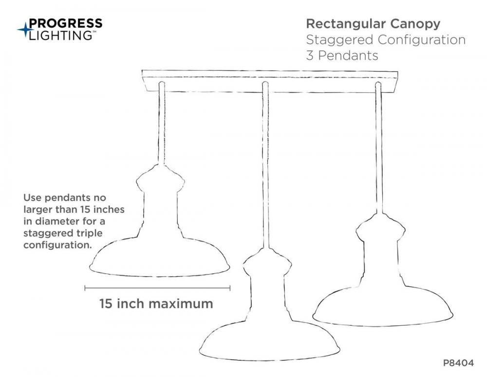 This linear pendant accessory allows for the hanging of 2 or 3 pendants off of one outlet box. Pendants can be mounted staggered or in line. The maximum pendant width for three pendants is 9 inch each. The maximum pendant width for two pendants is 18 inch each. Antique Bronze finish.