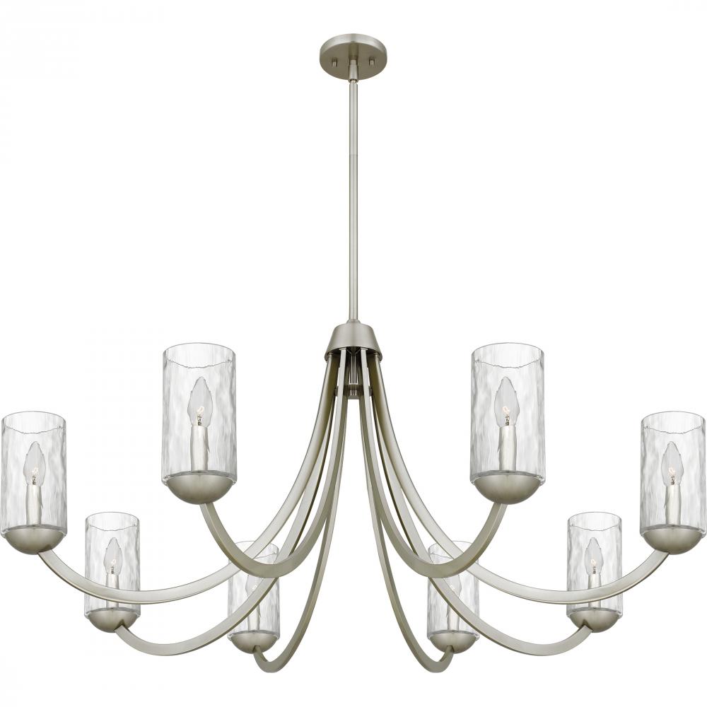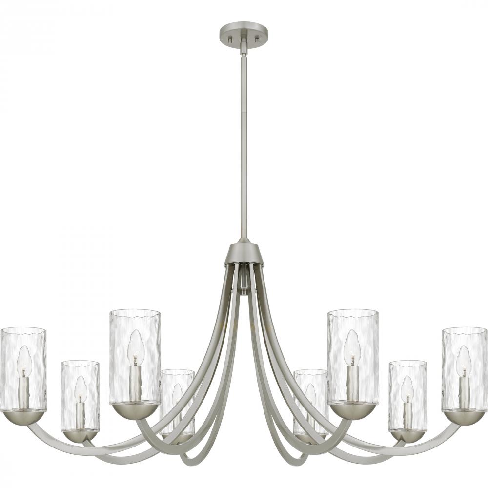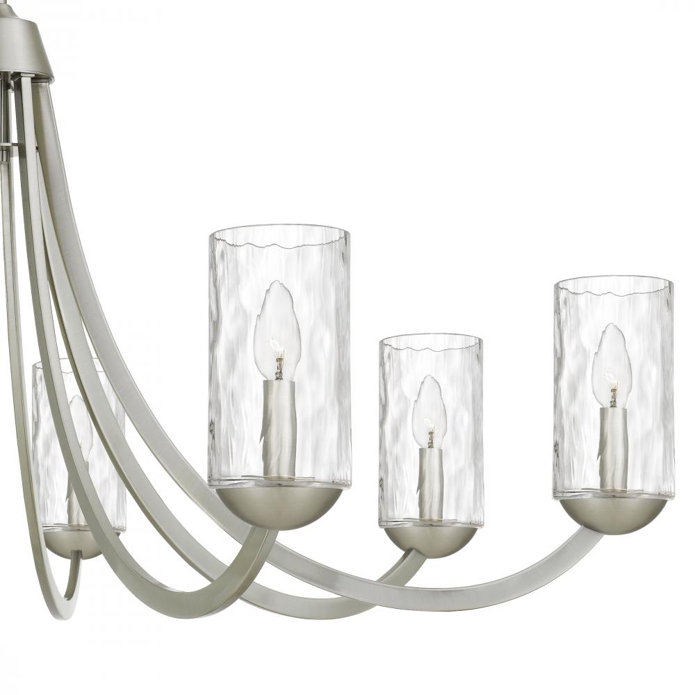 The Allard chandelier is a stunning centerpiece that commands attention. Clear water glass shades add a touch of sophistication and allow the light to shine through brilliantly. Choose from two sizes of chandelier in either matte black or brushed nickel to