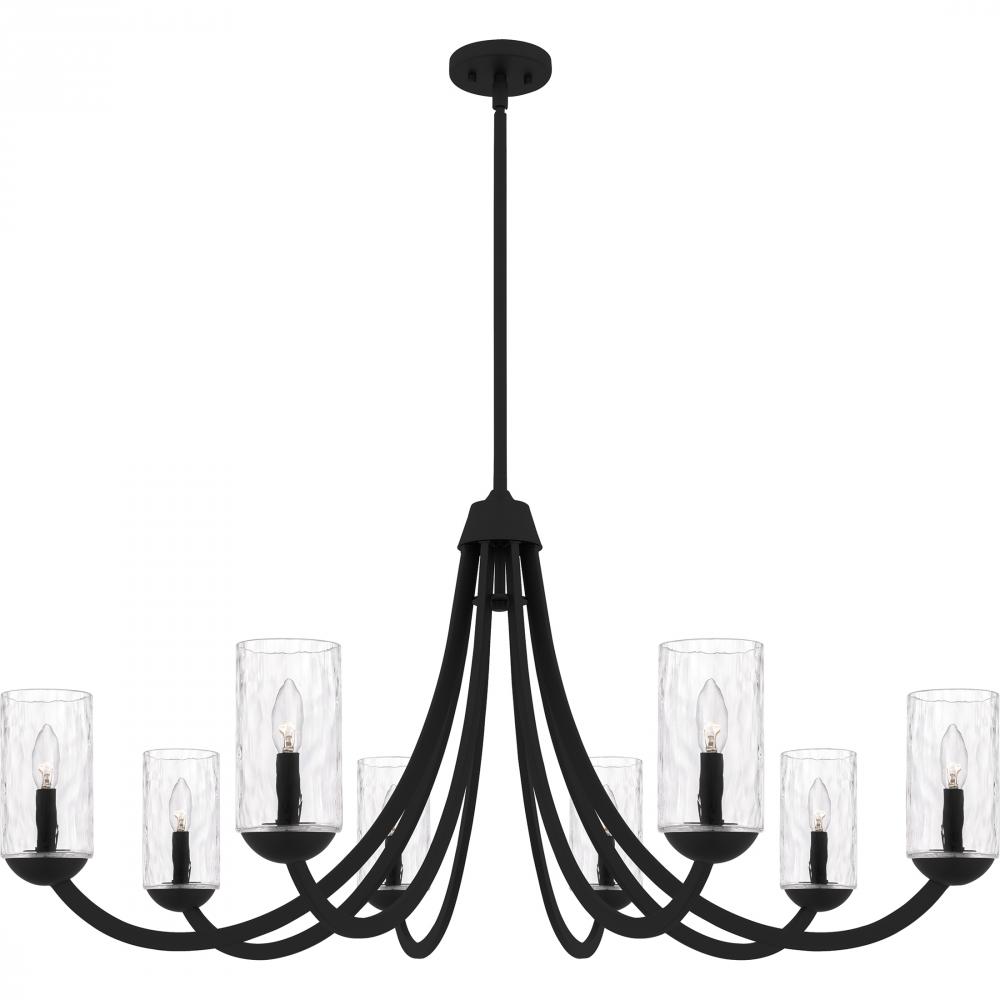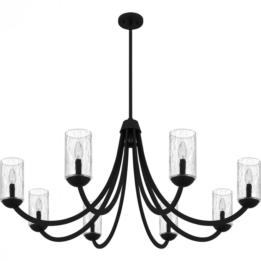 The Allard chandelier is a stunning centerpiece that commands attention. Clear water glass shades add a touch of sophistication and allow the light to shine through brilliantly. Choose from two sizes of chandelier in either matte black or brushed nickel to