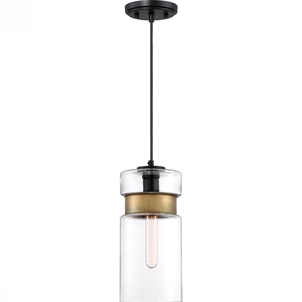 With a slim silhouette and minimal details the Gathering Mini Pendant wows in all the right places. The clear glass is cylindrical and to add a pop of color it is cinched with a broad band of painted brass. This cable-hung fixture can be adjusted to suit