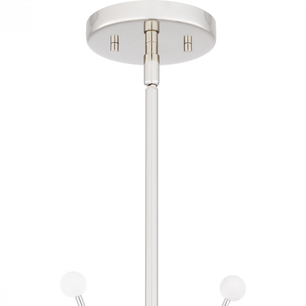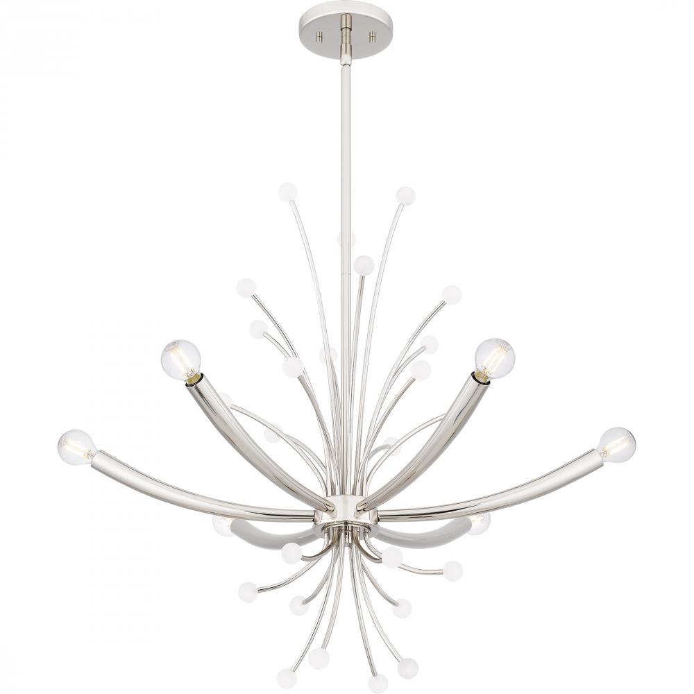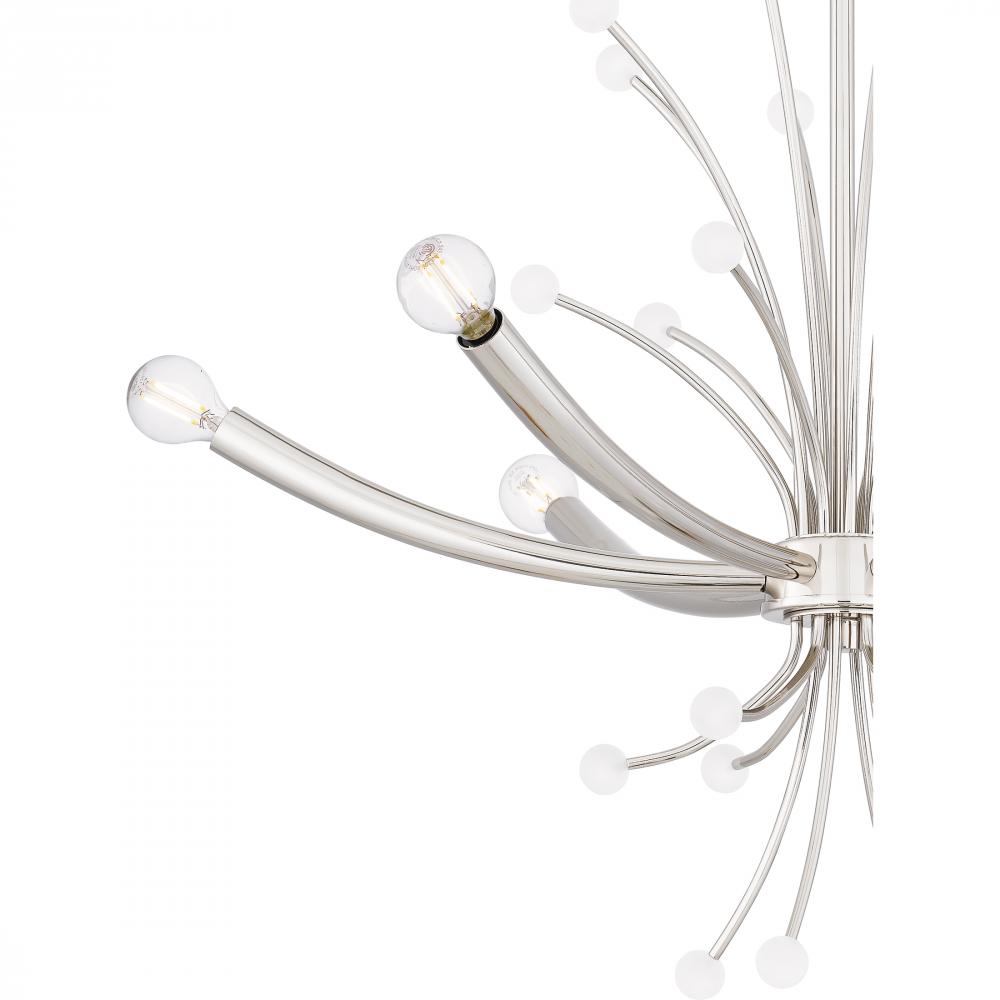 Kiera radiates on-trend, modern style. The captivating chandelier features a futuristic design with sleek, curving lines and small white spherical accents. Kiera is available in two beautiful finishes - choose brushed weathered brass for a slightly retro v
