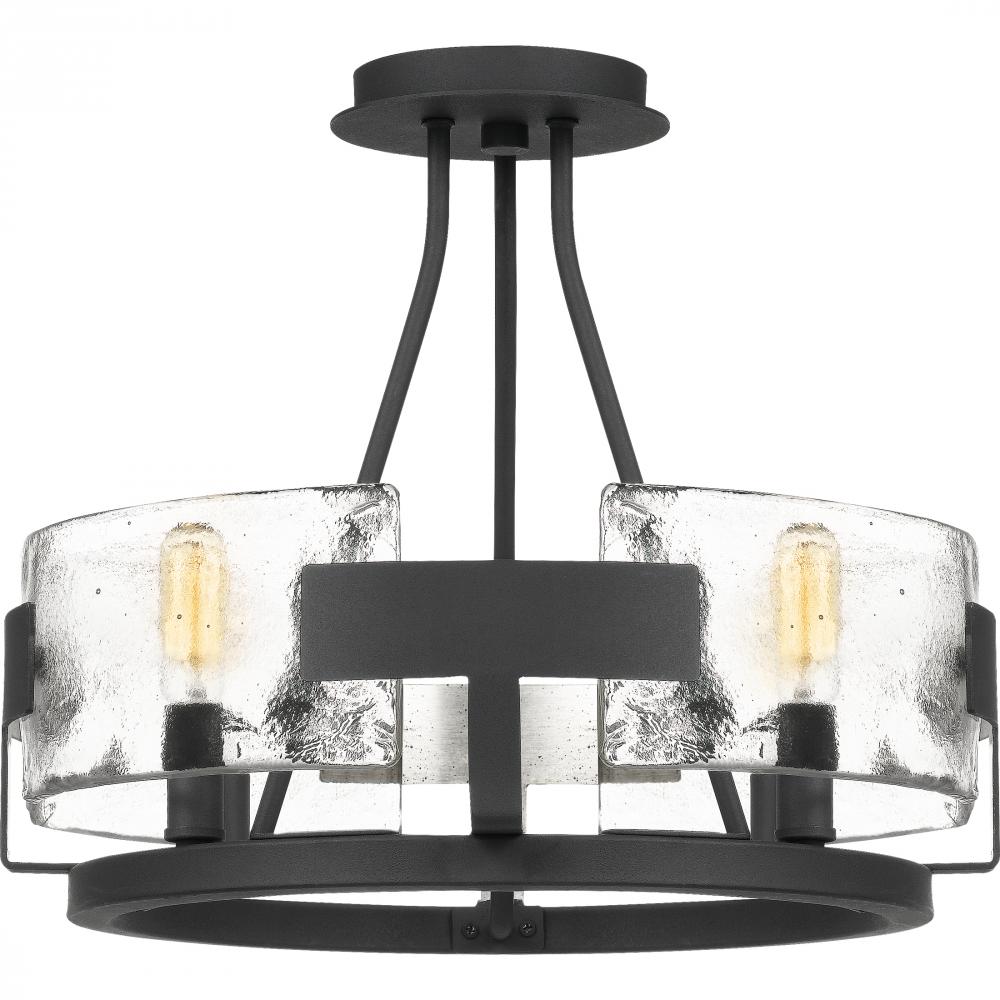 The Stratum delivers drama and depth in volumes. Thick panels of handmade glass subtly conceal the bulb, while allowing the light to pass through. A robust metal ribbon finished in royal ebony completes this artisanal look.