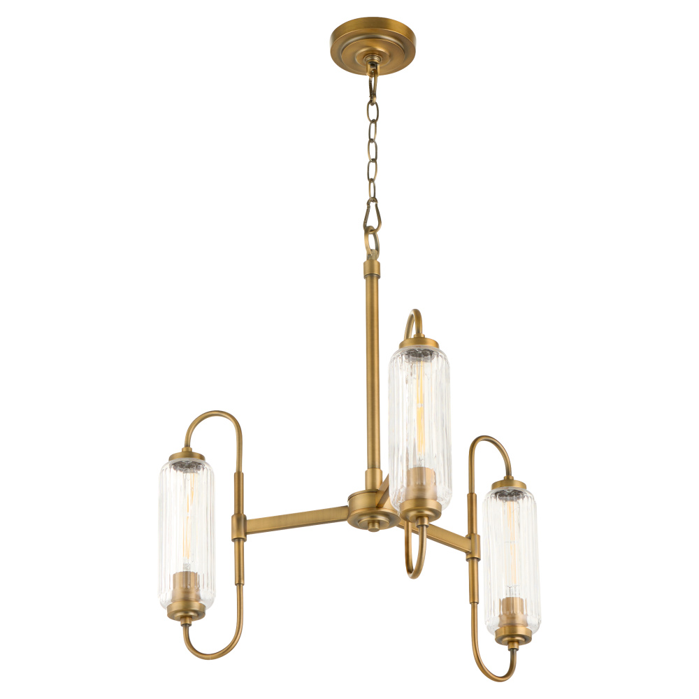 Inspired by the electronics of radio's early days, the Whitmire collection blends modern style with a sense of nostalgia for the emerging age of communication. With clear ribbed glass and a brushed brass finish, it perfectly blends timeless charm and forward-thinking design. Ideal for spaces that embrace tradition and innovation, the Whitmire collection brings a unique sophistication to living rooms, dining rooms, or entryways that call for an eye-catching centerpiece.