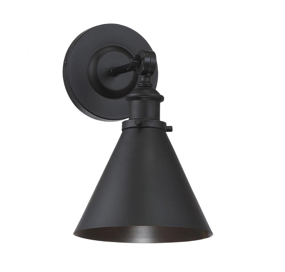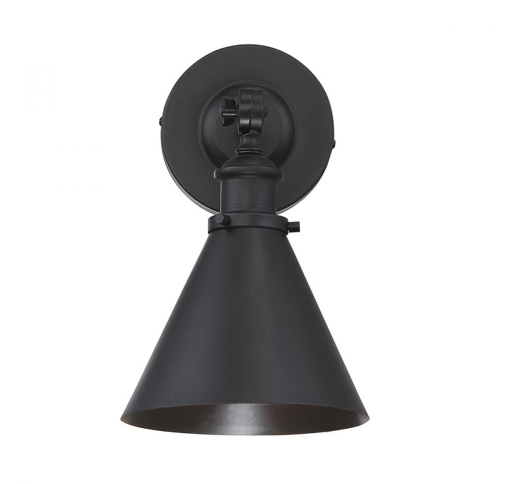 Set a dramatic mood with the Glenn wall sconce. Whether you want the industrial-inspired chic of an old noir film or the simple serenity of a country homestead novel, this fixture perfectly creates a classic scene right in your own home. The uncluttered details of the arm hardware and conical metal shade are an ideal fit for transitional, modern vintage, urban farmhouse, industrial or loft-like decor styles. A high-quality matte black finish looks terrific now and for years to come. The fixture is 7” wide by 12” high and holds a 60W standard size bulb. Plus, it’s adjustable because you can tilt the shade to place the light exactly where you want it. You’ll love the way this sconce’s subtle sophistication and streamlined casual style sets the stage in your living space.
