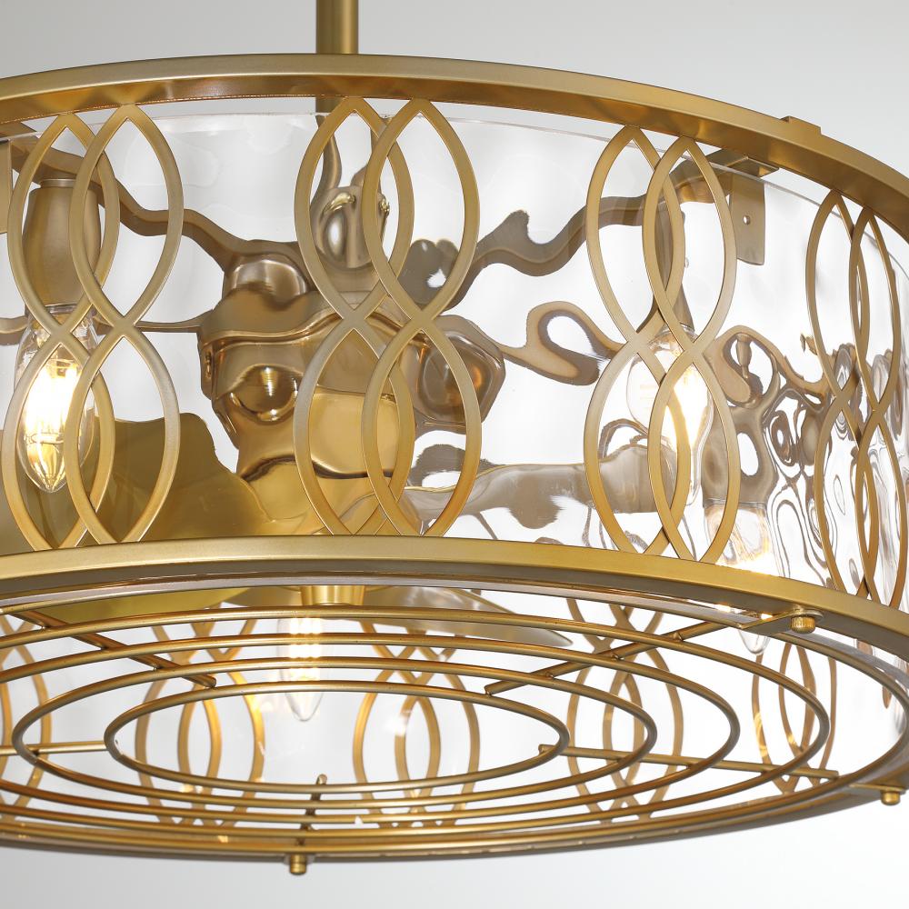 Get an unbelievably cool lighting look with the Savoy House Snowden 5-light Fan D'Lier. Its structure features an intricate curving design that perfectly accentuates the glacier glass shade within. Finished in Burnished Brass. Snowden is 29" in height and 24" in width. It uses five candelabra size bulbs of up to 60 watts per bulb. LED bulbs are included.