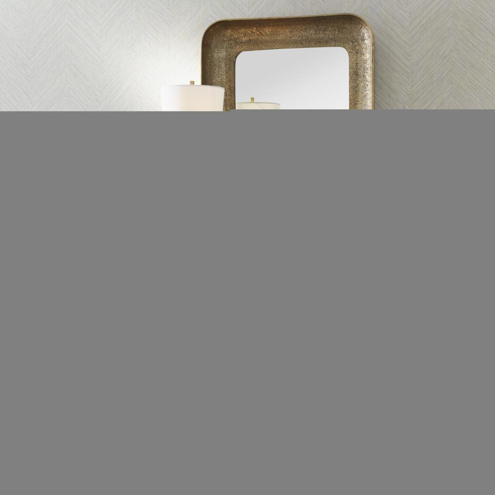 Crafted From Cast Aluminum And Finished In A Lustrous Plated Antique Brass, The Alvaro Mirror Boasts A Deeply Sloped Profile That Features Texture And Intentional Imperfections That Add A Touch Of Artisan Charm.
