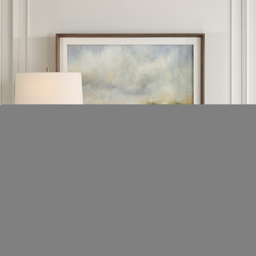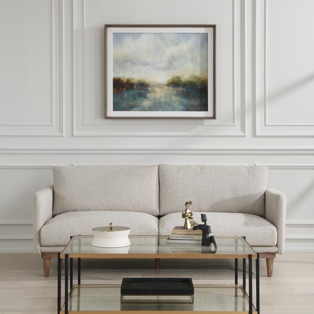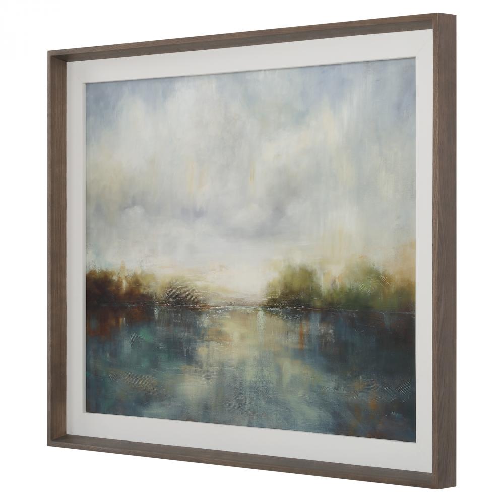 Immerse Yourself In A Serene Landscape Depicting A Moody Blue Lake, Elegantly Presented Within An Aged Walnut Frame And Highlighted By A Crisp White Linen Liner. Perfect For Adding A Touch Of Tranquility To Any Space. Artwork By Simon Addyman.