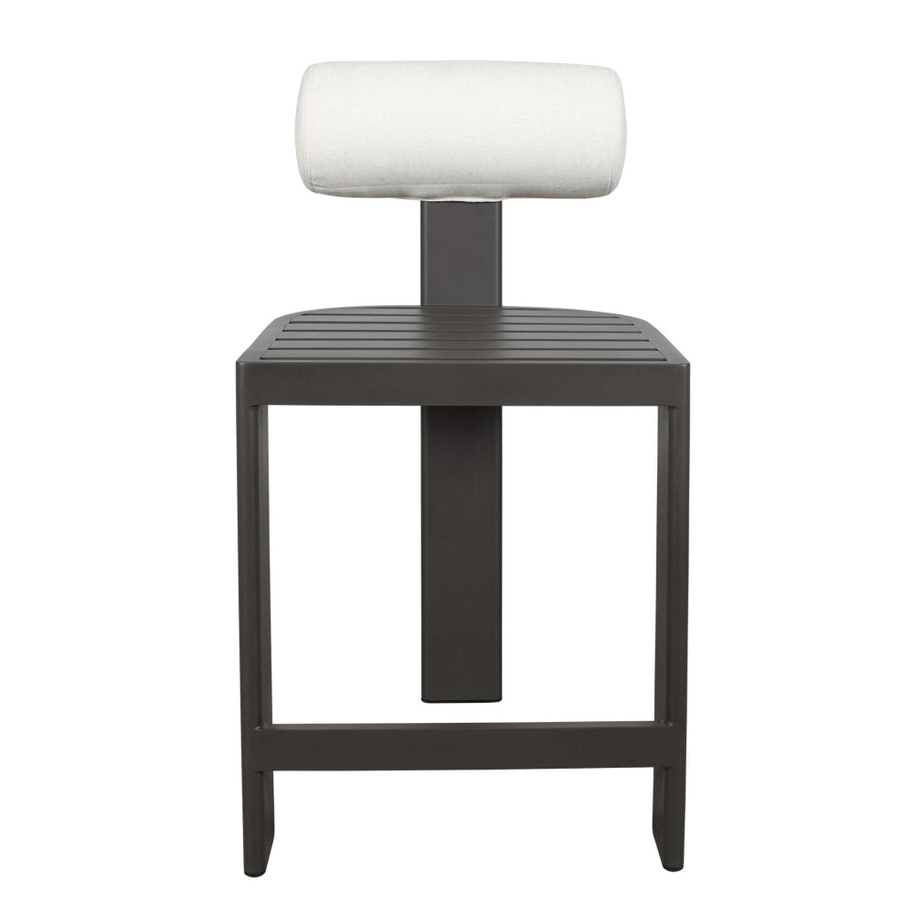 Designed To Bring Contemporary Style To Your Outdoor Oasis, The Bolster Back Outdoor Counter Stool Features A Sleek Java Black, Powder Coated Aluminum Frame Suspending A Floating Bolster Back Pillow. Upholstered In A Textured Oyster White Solution Dyed Acrylic Fabric Designed To Withstand The Moisture And Dirt That Comes With Outdoor Use.