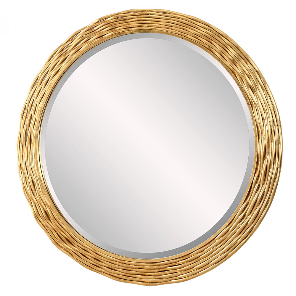 Our Celeste Round Mirror Is Crafted With Layered Iron Rods Meticulously Hand-forged To Create A Graceful, Alternating Wavy Texture. This Unique Design Exudes A Soft Yet Industrial Elegance, Finished In A Lightly Antiqued Gold Leaf. Mirror Has A Generous 1 1/4" Bevel.
