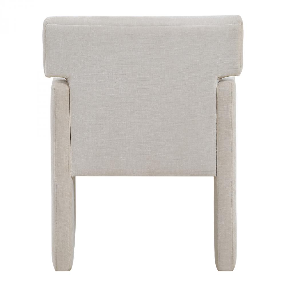 An Elegant And Clean-lined Dining Chair, Perfect Used As The Host And Hostess Seat, Featuring An Elevated Back Design. Fully Upholstered In An Ivory Polyester Velvet With Crosshatched Texturing.