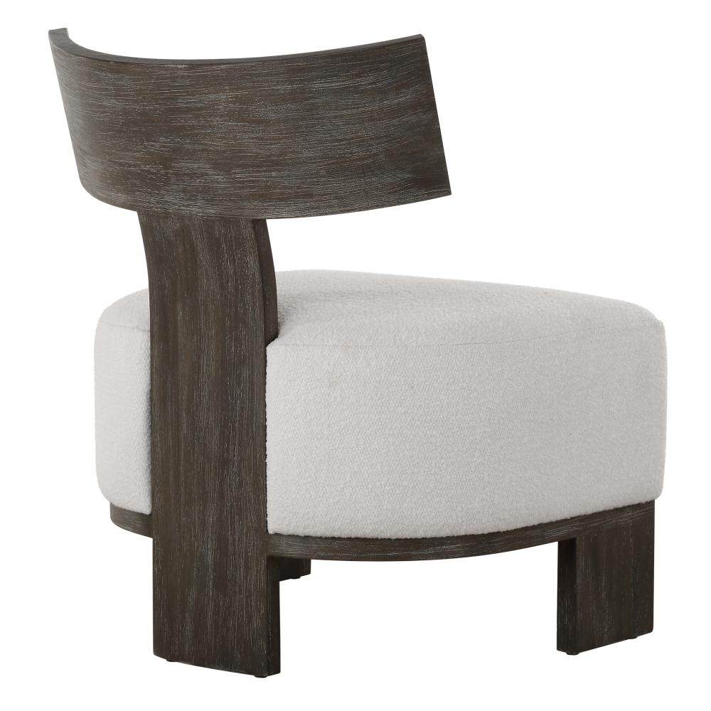 A Classic Klismos Design That Stuns From Every Angle, Complete With A Solid Bent Wood Back Support Shaped For Ultimate Comfort And Finished In Dark Walnut. The Chunky Floating Seat Is Upholstered In A Sugar Toned Polyester Fabric With A Soft Wool-like Texture. Seat Height Is 19".