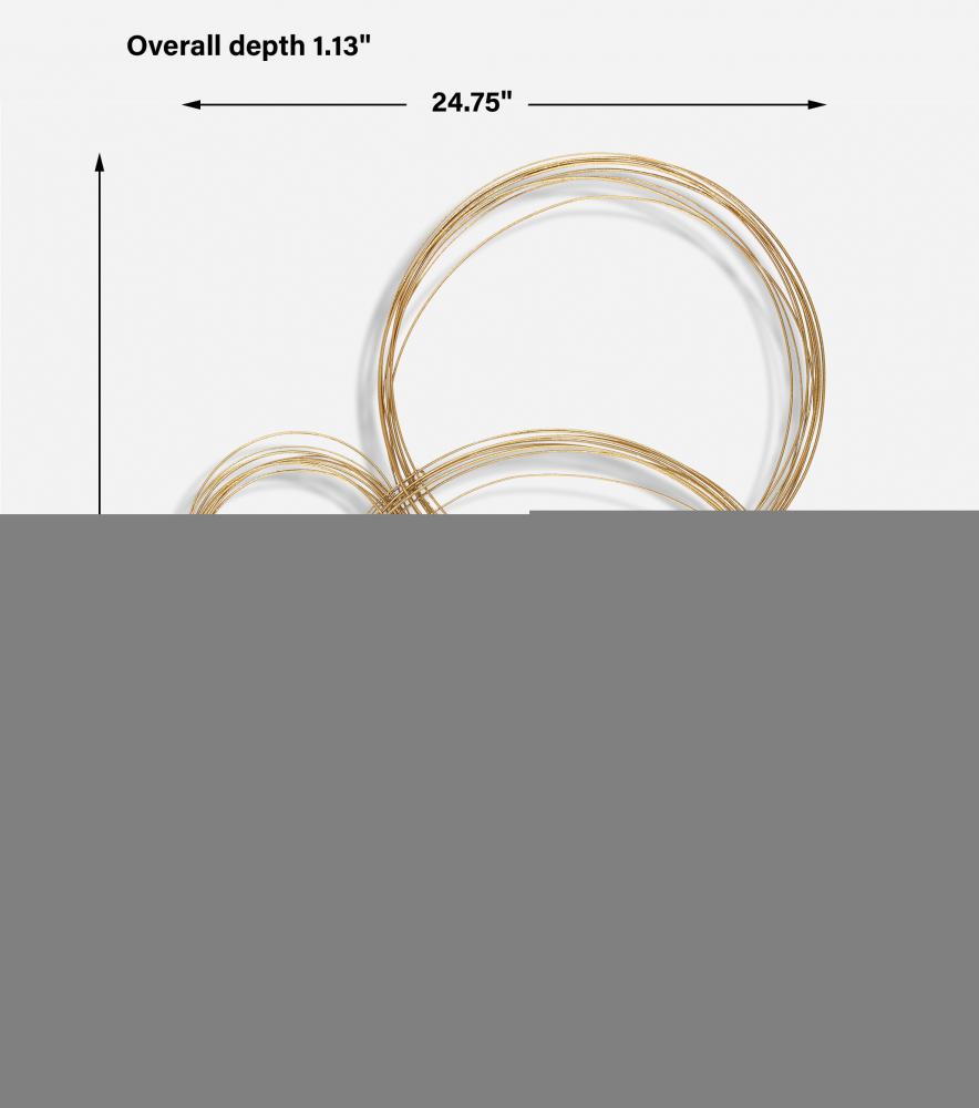 Spiraled Rings Giving The Effect Of Glistening Bubbles Are Hand Crafted From Petite Iron Rods And Interlaced Together Finished In Antique Gold Leaf. May Be Hung From Any Direction.