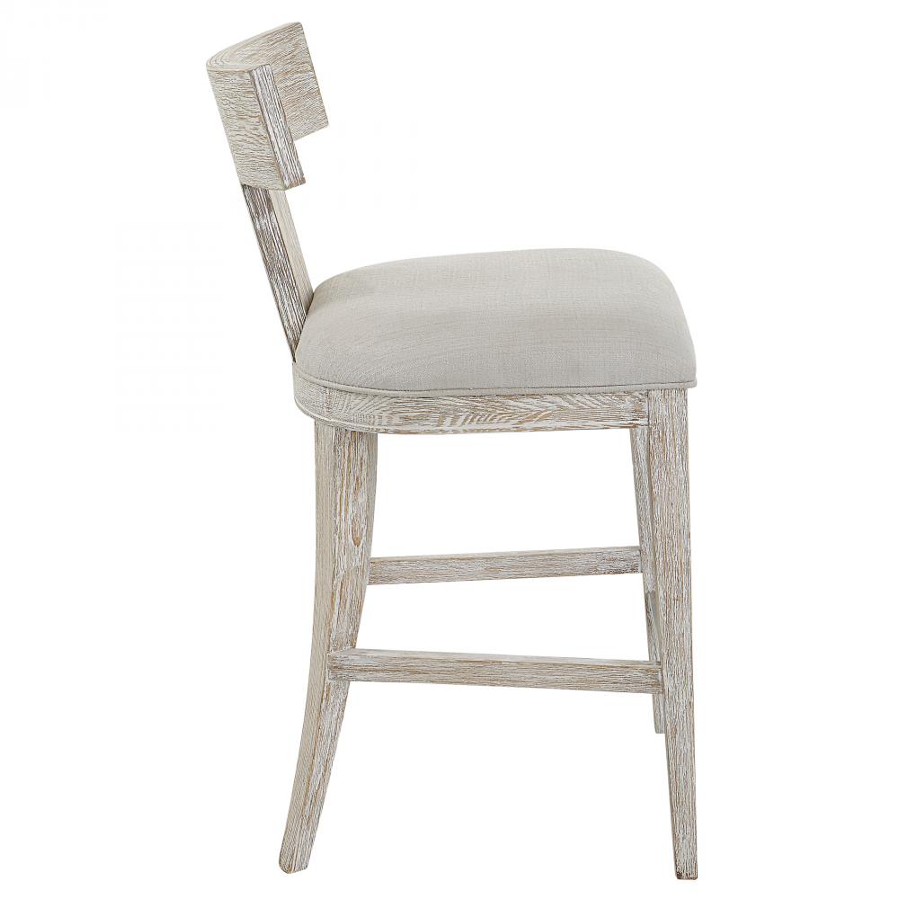 This Modern Take on A Klismos Chair Features A Curved Wood Frame in A Whitewashed Finish, with Wire Brushed Details Revealing Natural Pine Wood Undertones. Paired with A White Slubbed Performance Fabric Cushion. Seat Height is 26".