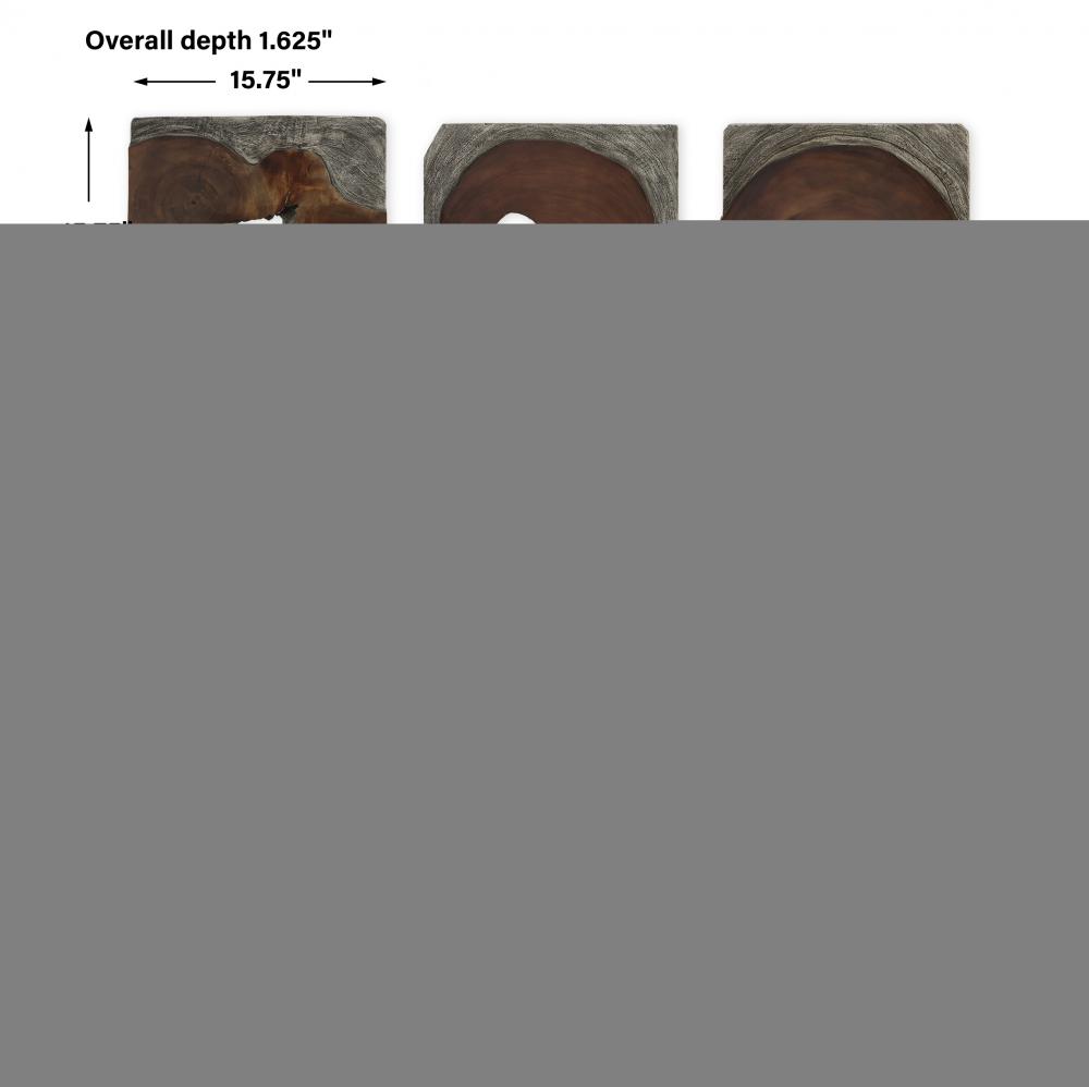 This Set of Nine Wood Wall Pieces is Crafted From 100% Natural Suar Wood in A Dual Dark Coffee Brown and Rustic Black Carved Finish. Due to Each Piece Being Individually Handcrafted, Natural Variation Will Occur From Piece to Piece.