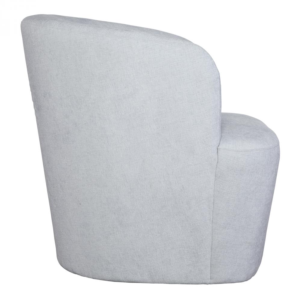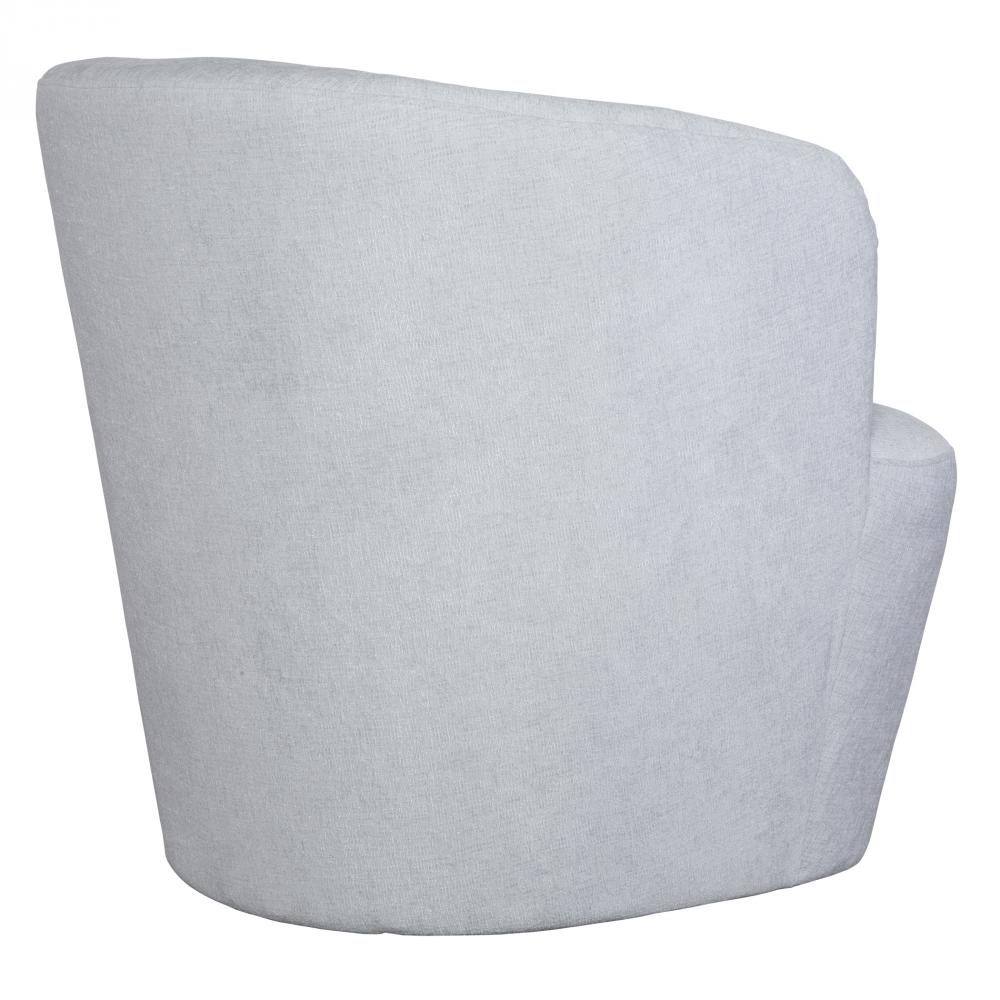 An Airy And Inviting Barrel Style Swivel Chair, Tailored In A Finely Textured, Cleanable Polyester With Exceptional Durability In Light Cloud Blue. Rests Atop A Solid Wood Swivel Base In Matte Black. Seat Height Is 19."