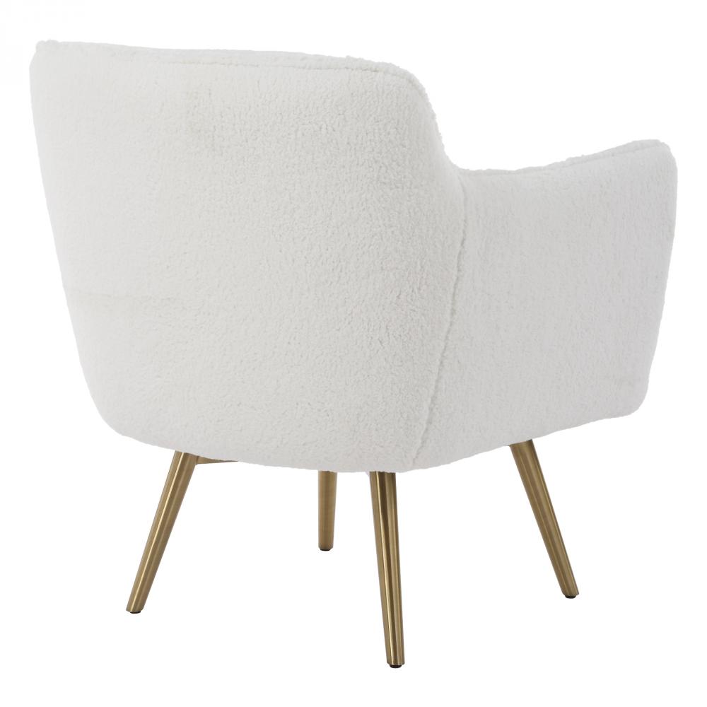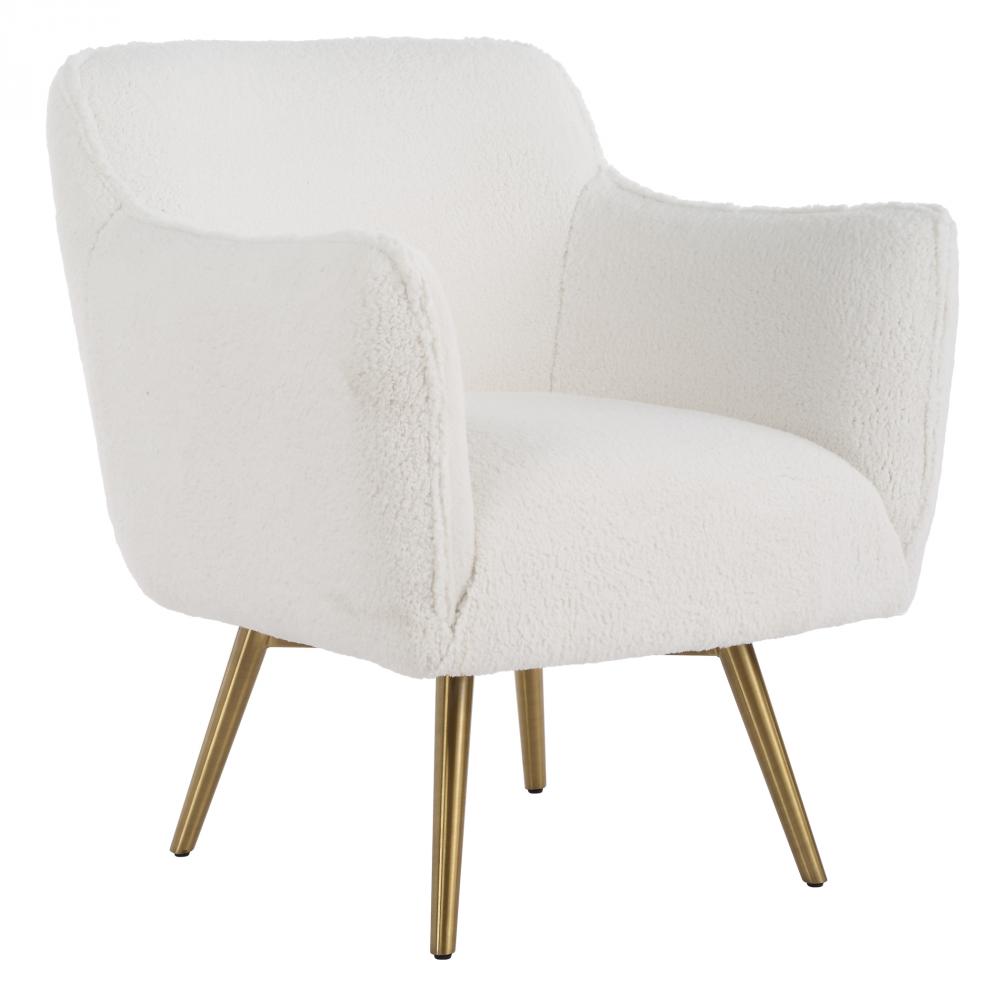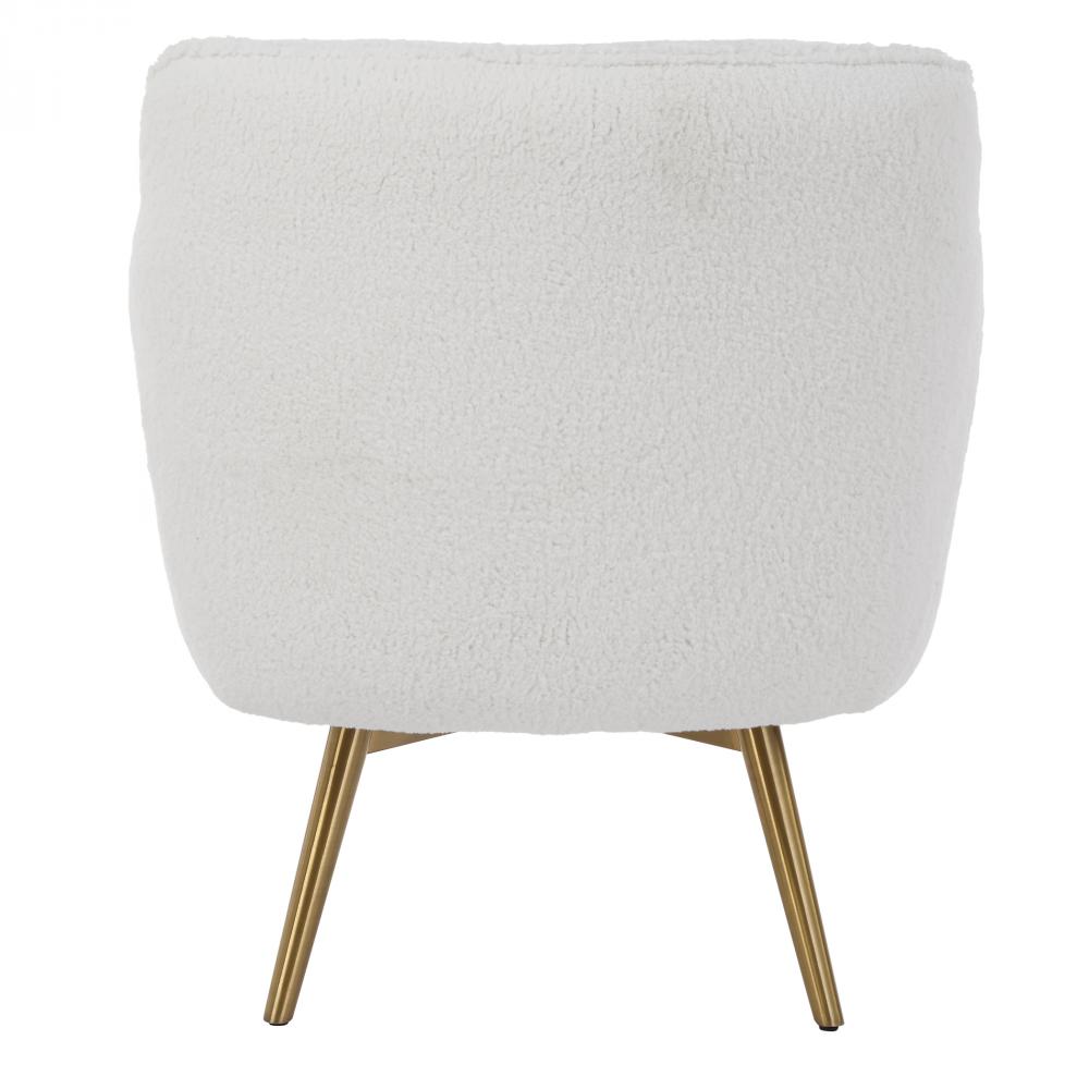 Nestle Into The Surrounding Comfort Of The Oasis Swivel Chair. Gently Sloped Curves Are Accentuated With A Welt Trim Of An Ultra Plush White Faux Sheepskin Fabric. Complete With A Swivel Return Atop Tapered Stainless Steel Legs Plated In Brushed Brass. Seat Height Is 20".